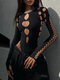Elevate your wardrobe with the Women's Hollow Out Black Bodysuit, designed to exude confidence and individuality while adding a contemporary twist to your outfit choices.