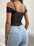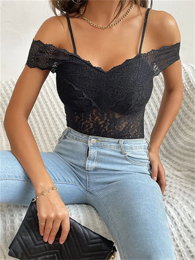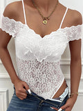 Women Lace Bodysuits Off Shoulder spaghetti Straps V Neck Bodysuit