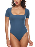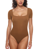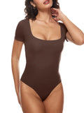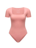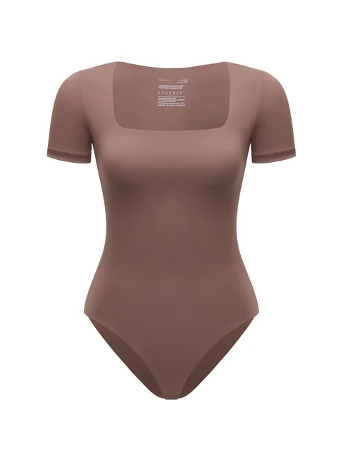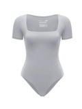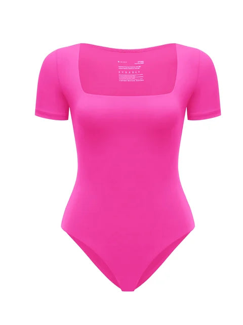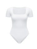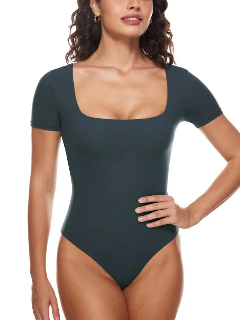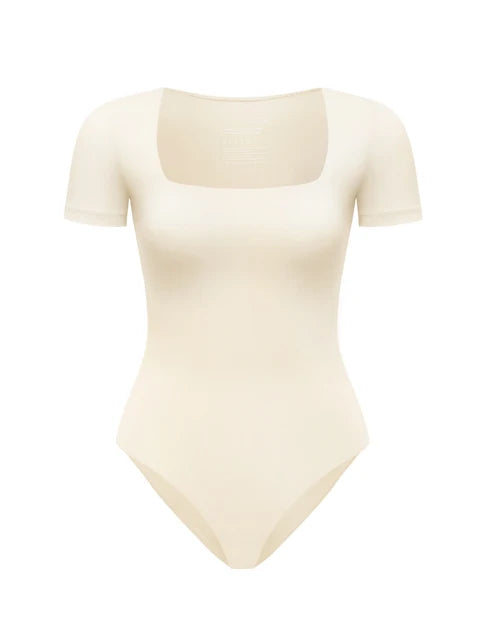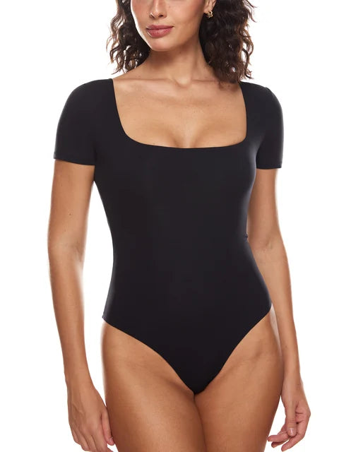 Chic Square Neck Thong Bodysuit Double Lined Soft Sleek