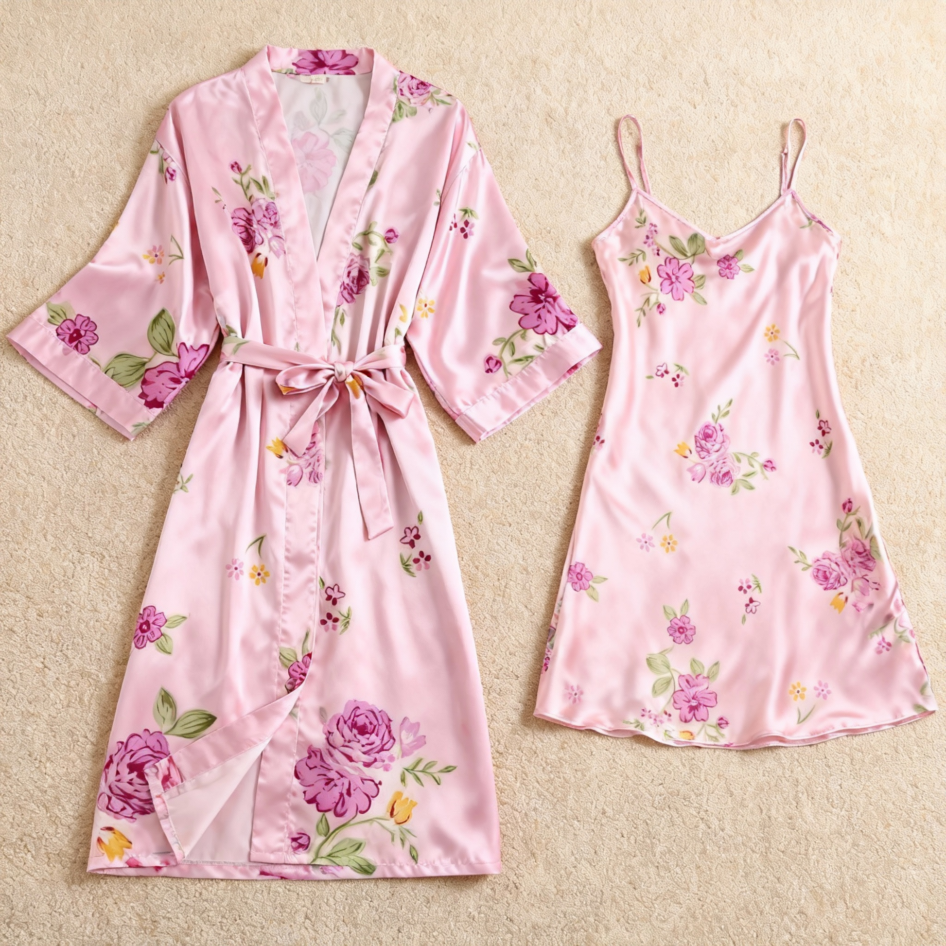Thoughtful Details: The robe includes a matching self-tie belt for a customizable wrap, and both pieces are finished with fine stitching for durability and a polished look.