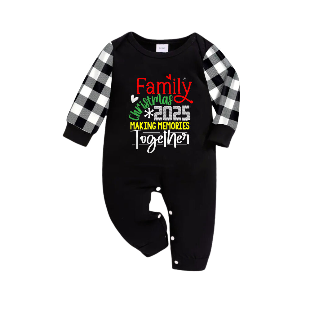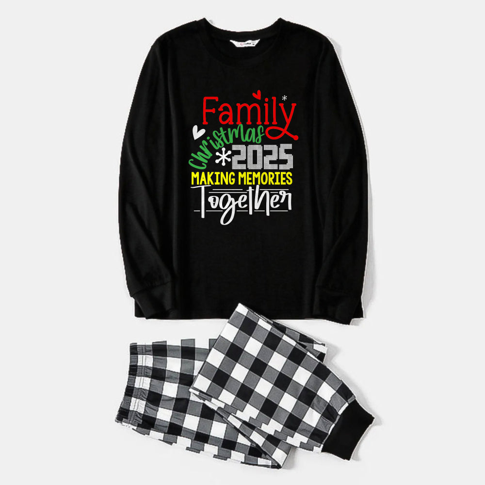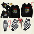 Black and White Plaid Christmas Pajamas Set With Christmas Colorful Slogan Print