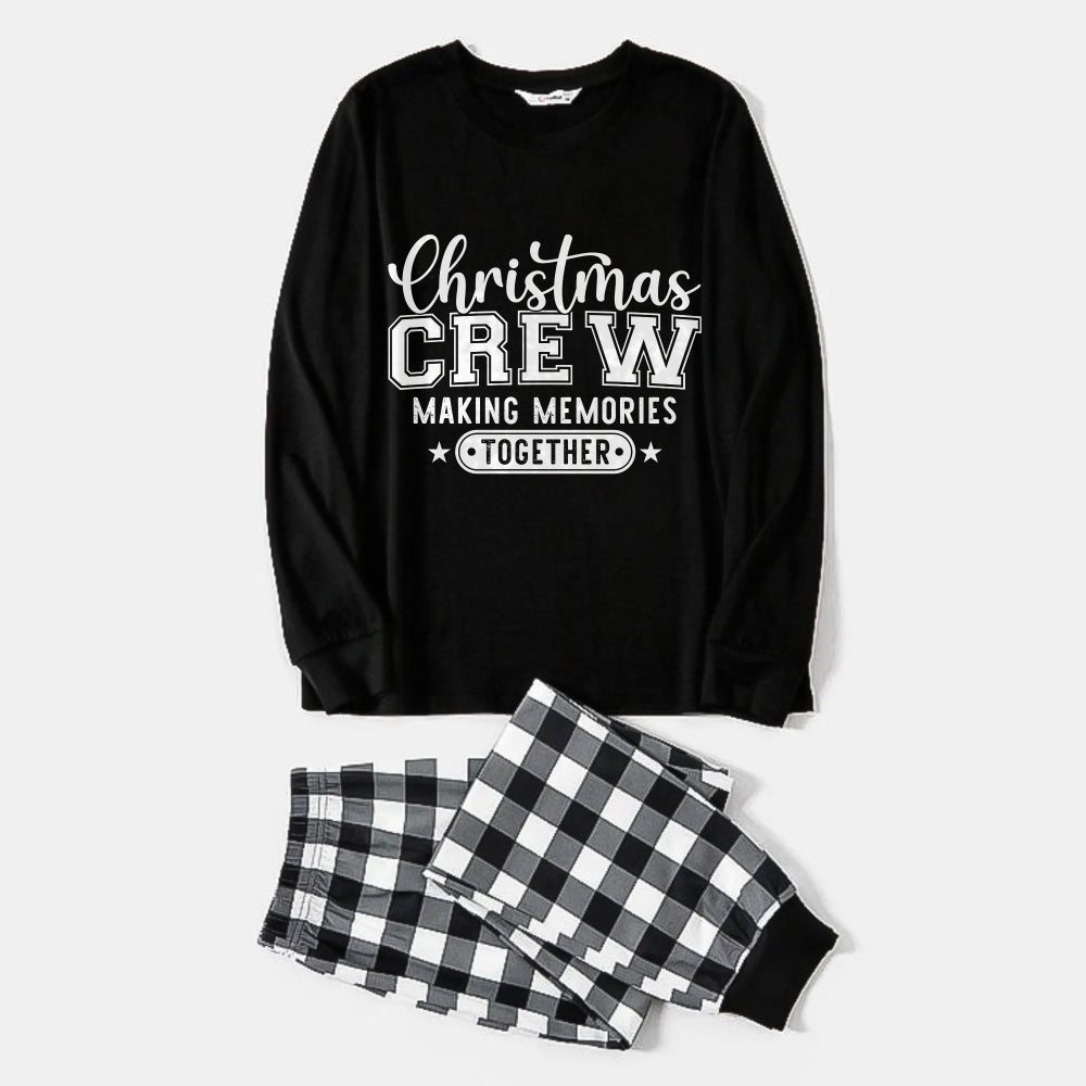 Black and White Plaid Christmas Pajamas Set With "Christmas Crew Making Memories Together" Black & White Text Print