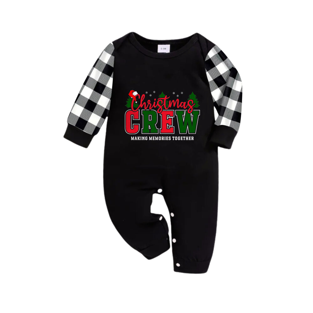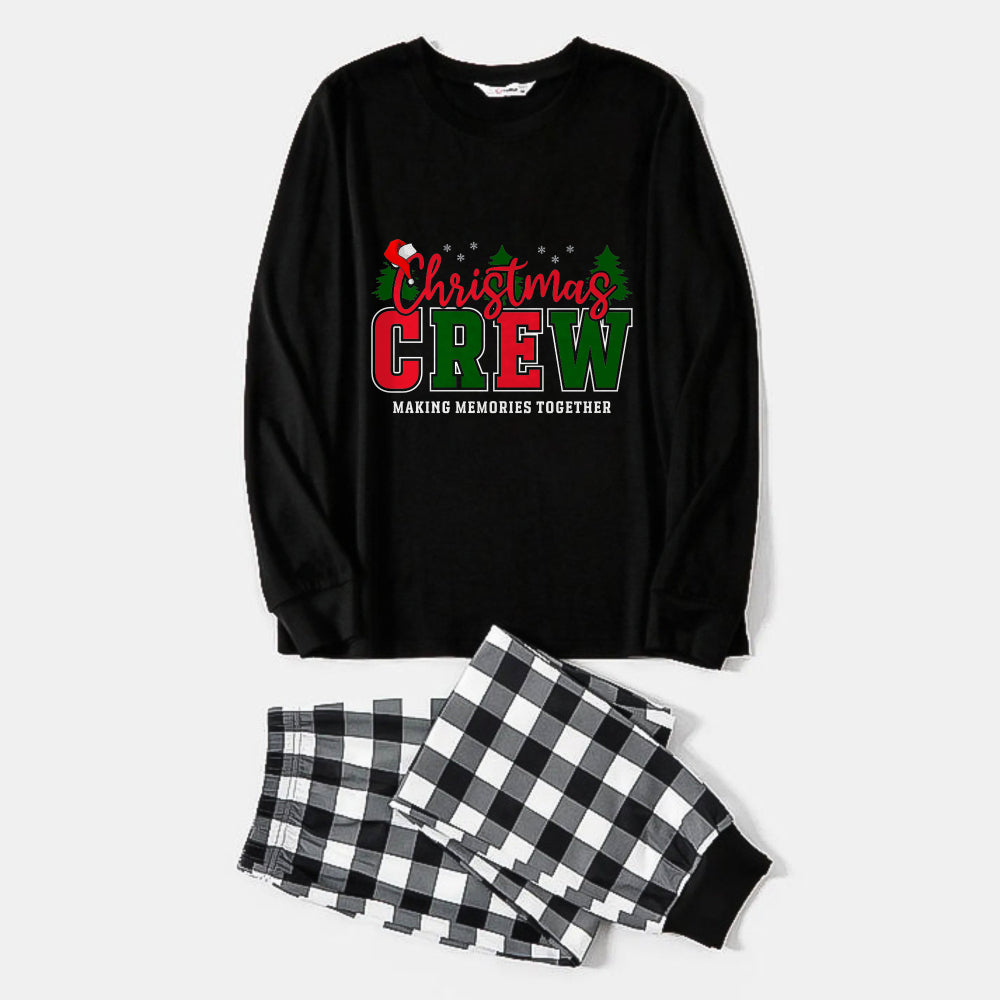 Black and White Plaid Christmas Pajamas Set With "Christmas Crew Making Memories Together" Print