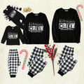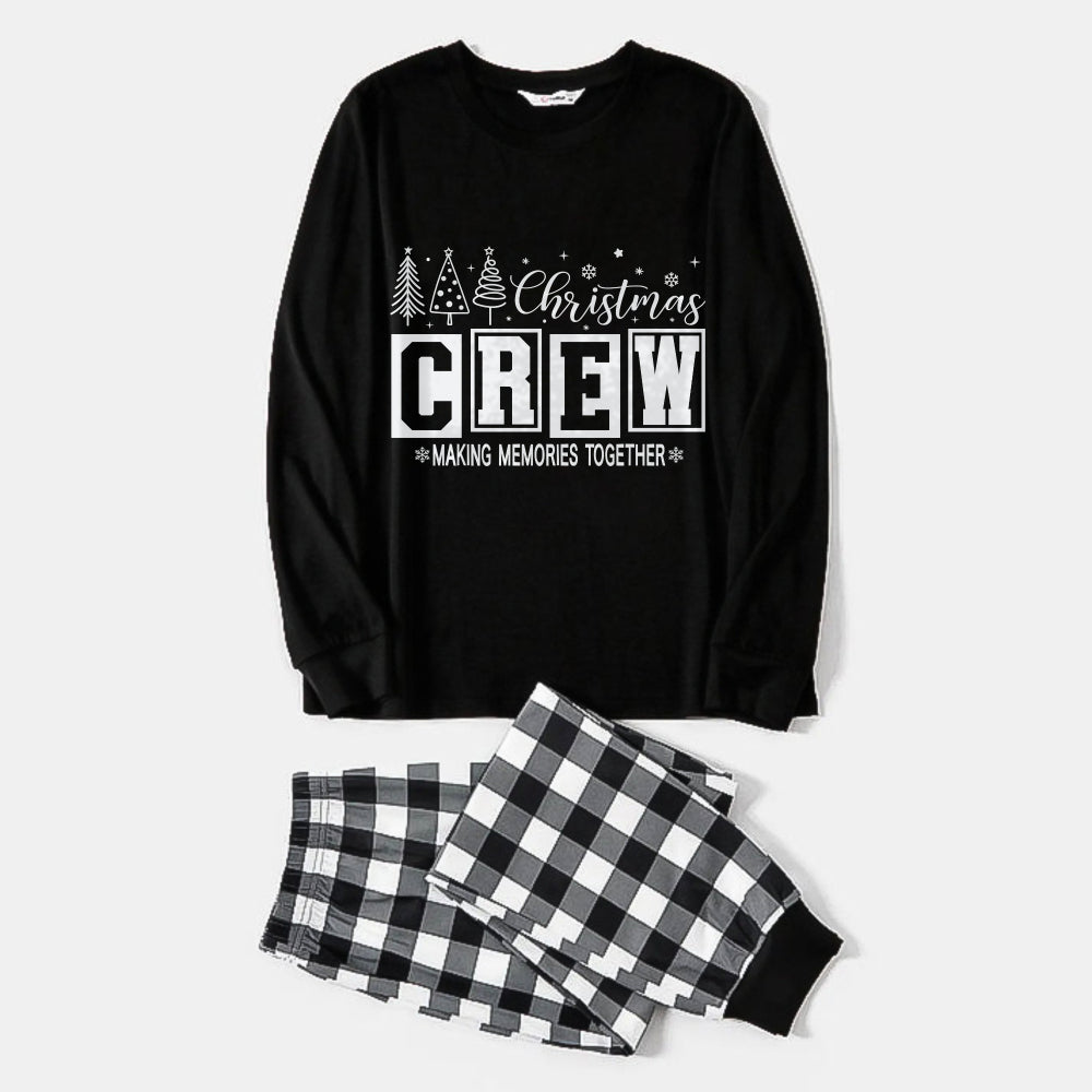 Black and White Plaid Christmas Pajamas Set With Christmas Tree and "Making Memories Together" Text Print