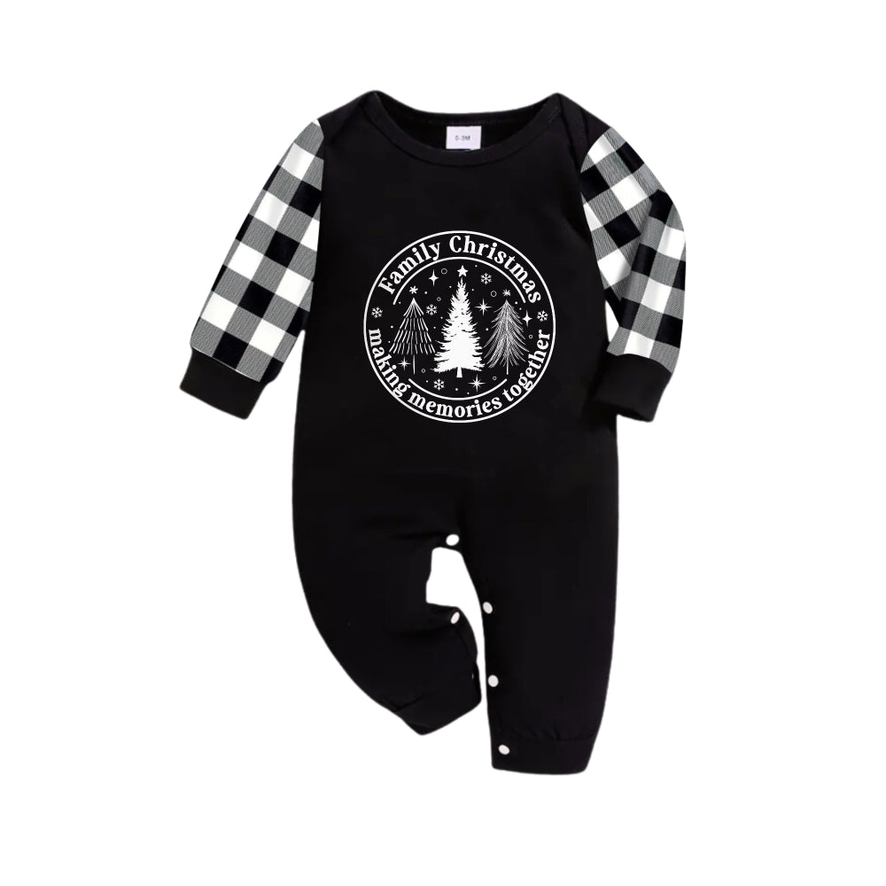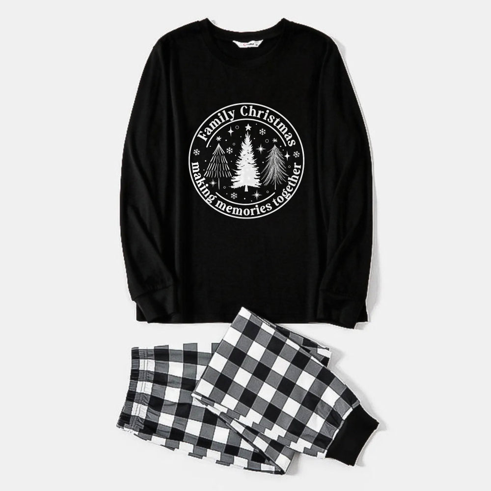 Black and White Plaid Christmas Pajamas Set With Christmas Tree Print