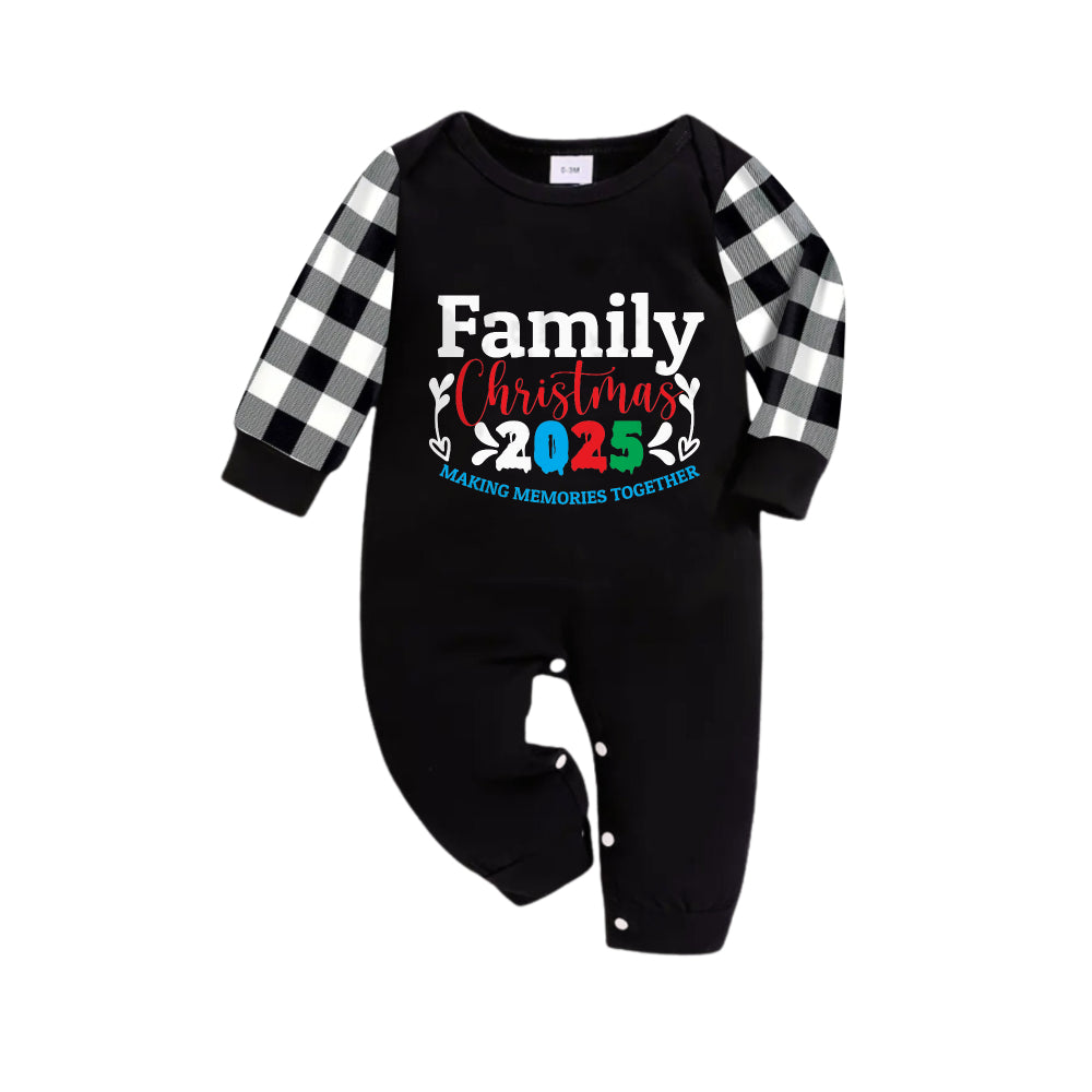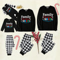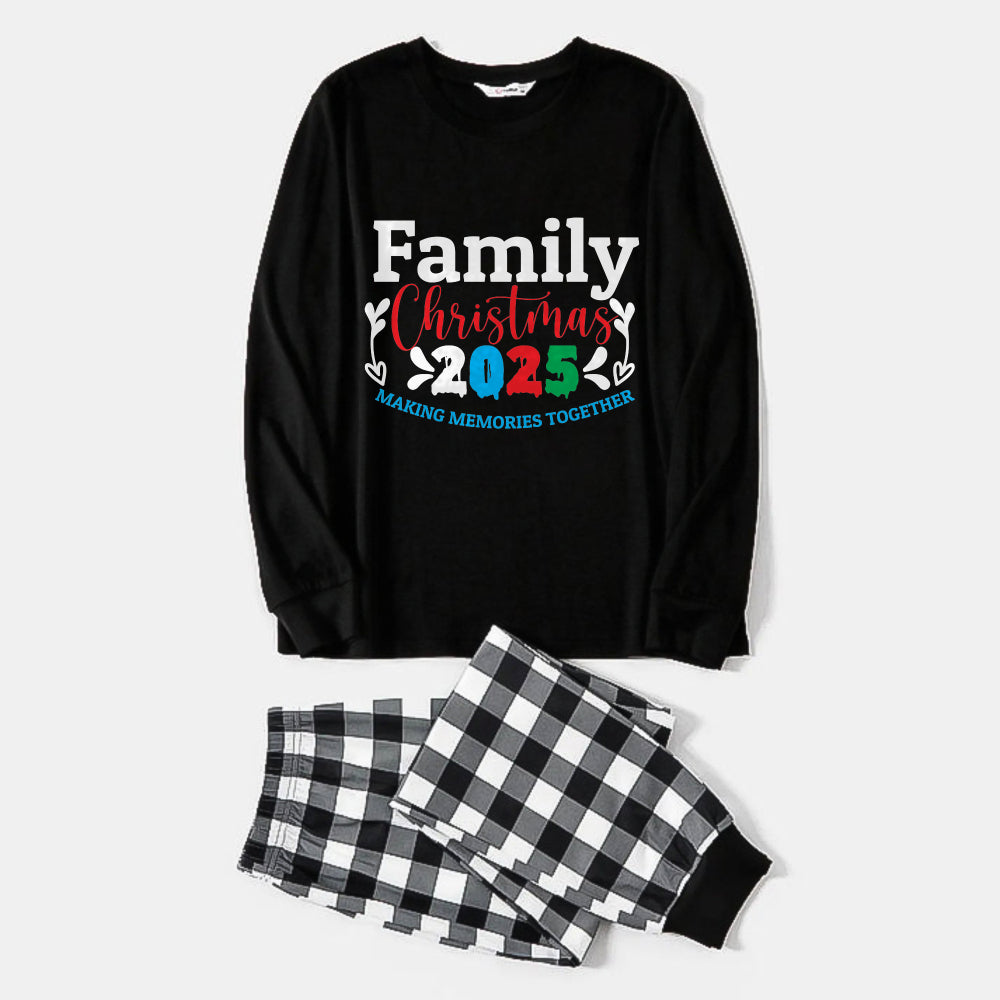 Black and White Plaid Christmas Pajamas Set With "Family Christmas 2025" Colorful Print