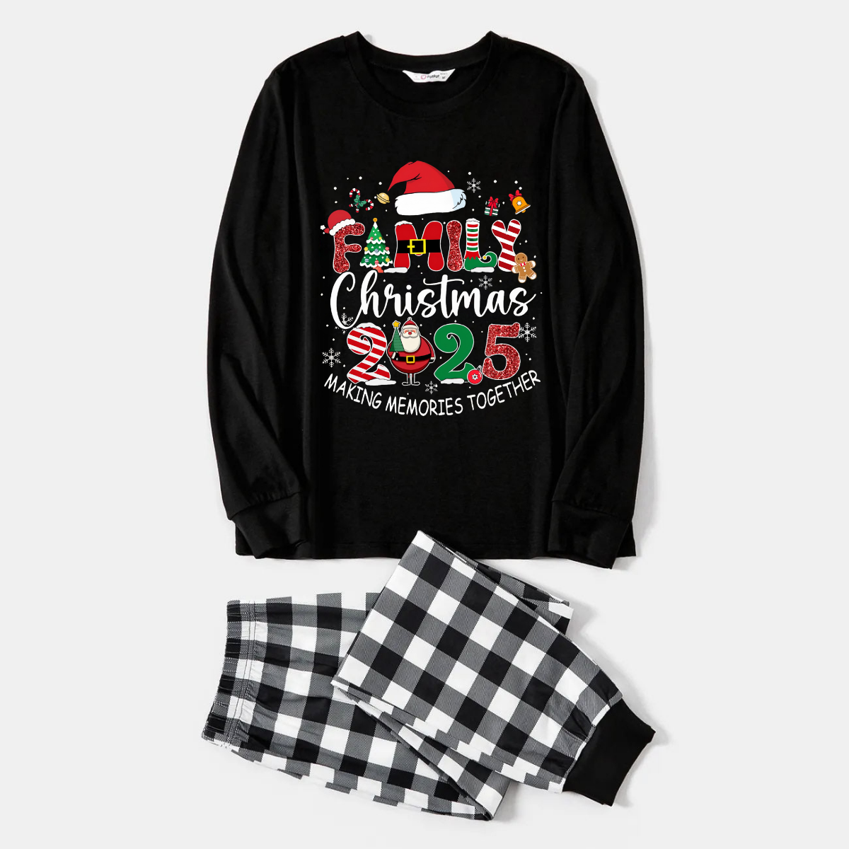 Black and White Plaid Christmas Pajamas Set With "Family Christmas 2025 Making Memories Together" Text Print