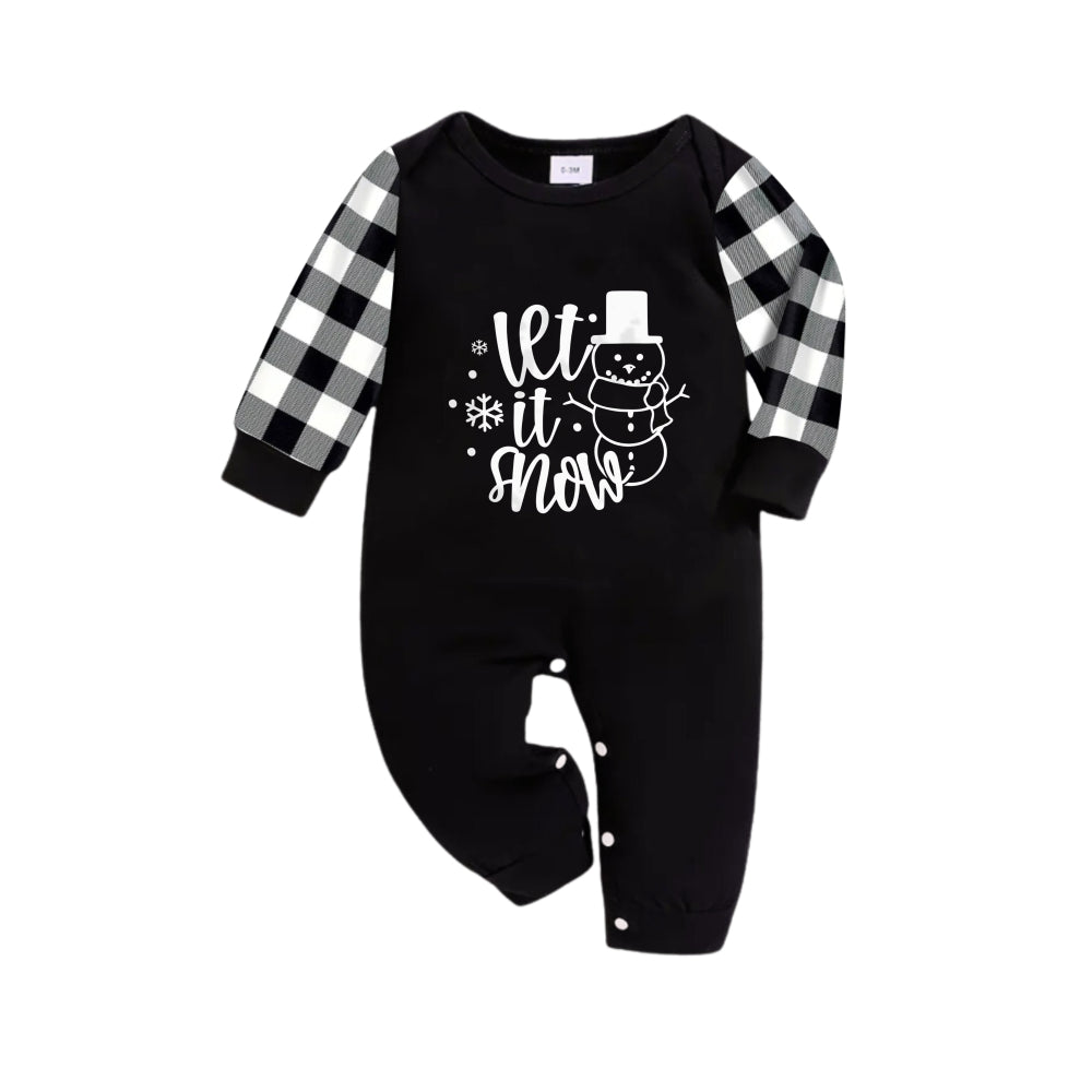 Black and White Plaid Christmas Pajamas Set With "Let It Snow" Black&White Print