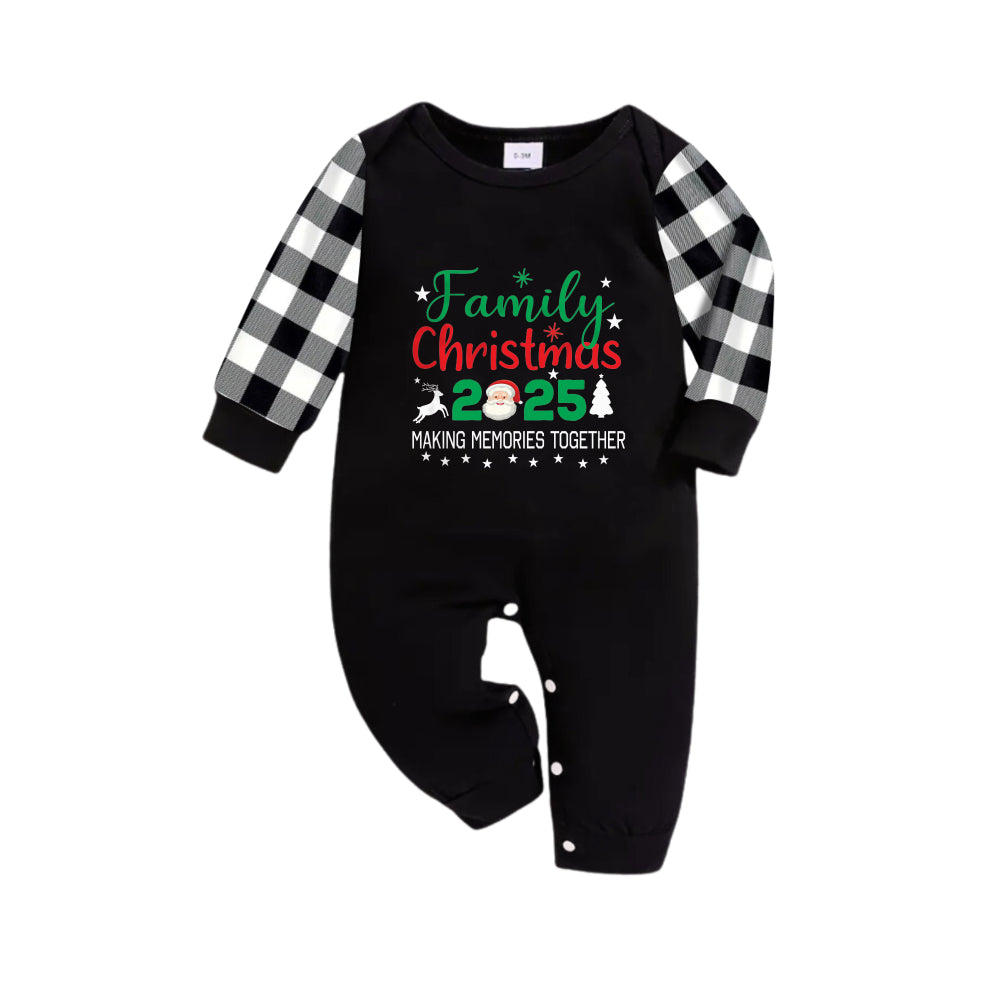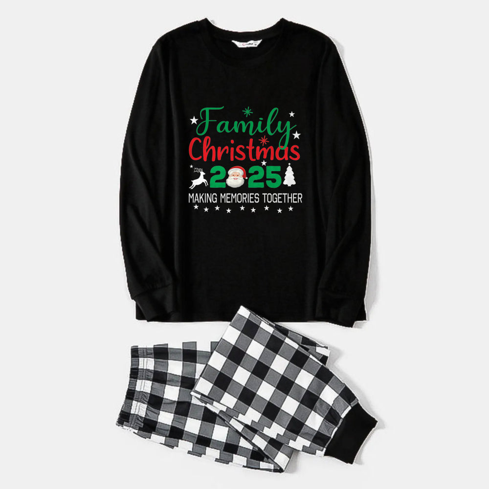 Black and White Plaid Christmas Pajamas Set With Santa and "Family Christmas 2025 Making Memories Together" Festive Colorful Text Print