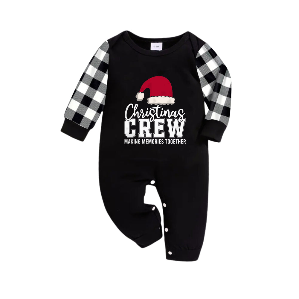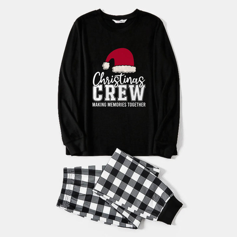 Black and White Plaid Christmas Pajamas Set With Santa Hat and "Christmas Crew Making Memories Together" Print