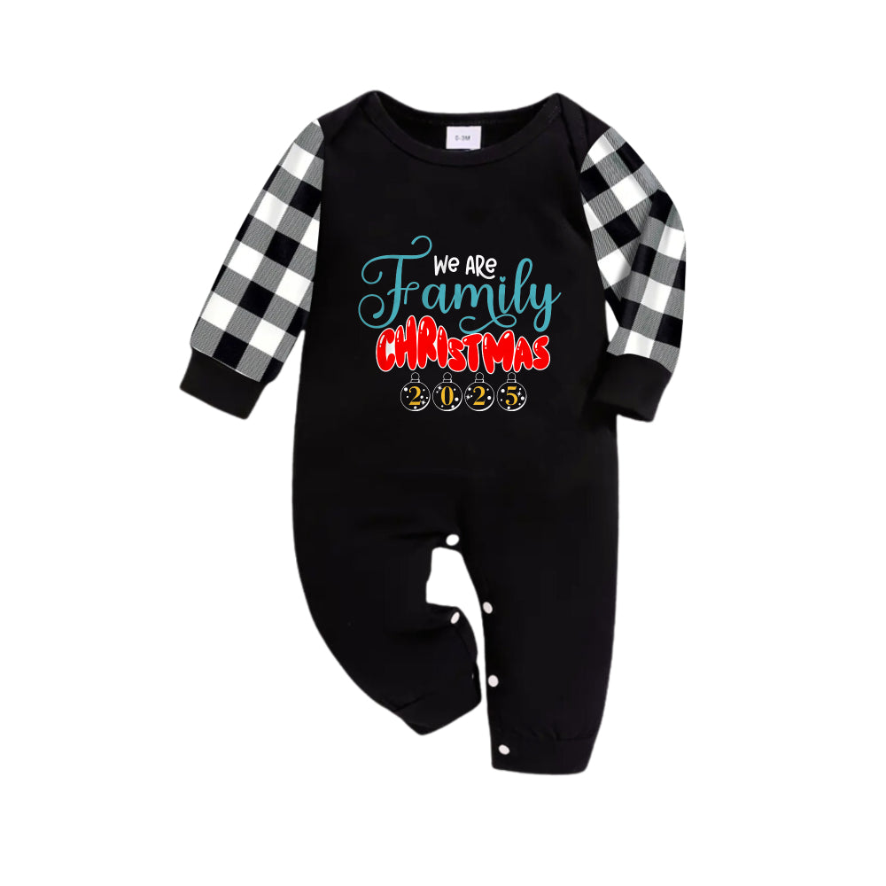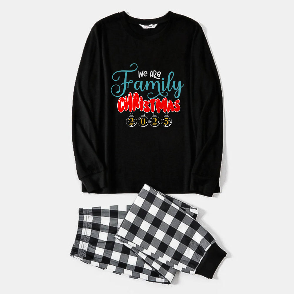 Black and White Plaid Christmas Pajamas Set With "We Are Family Christmas 2025" Colorful Print