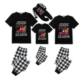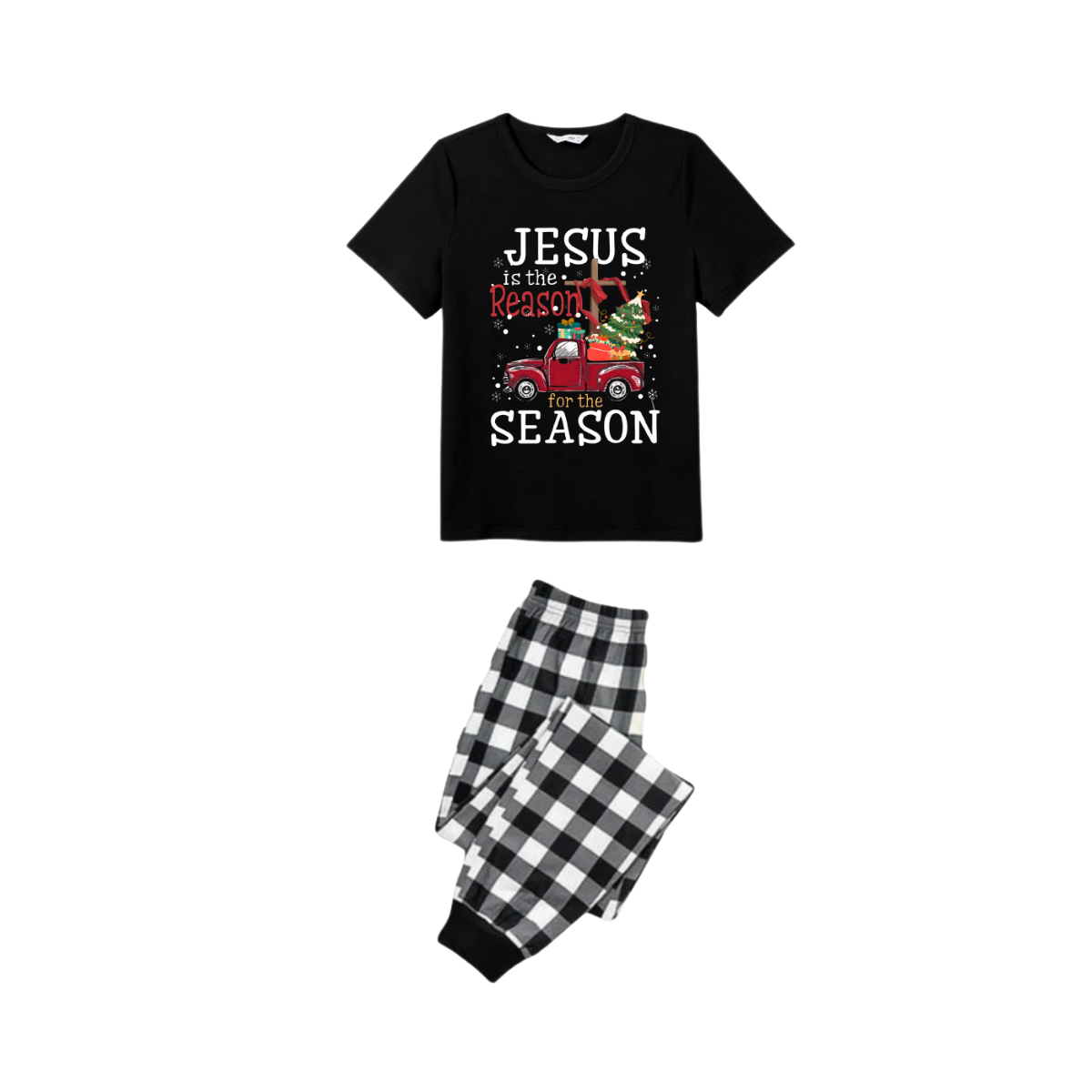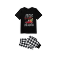 Black and White Plaid Christmas Short Sleeve Pajamas Set With "Jesus is the Reason for the Season" Text Print