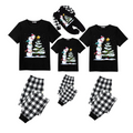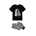 Black and White Plaid Christmas Short Sleeve Pajamas Set with Snowman & Christmas Tree Print