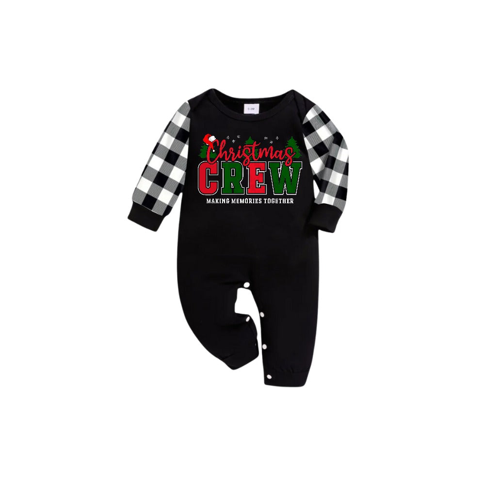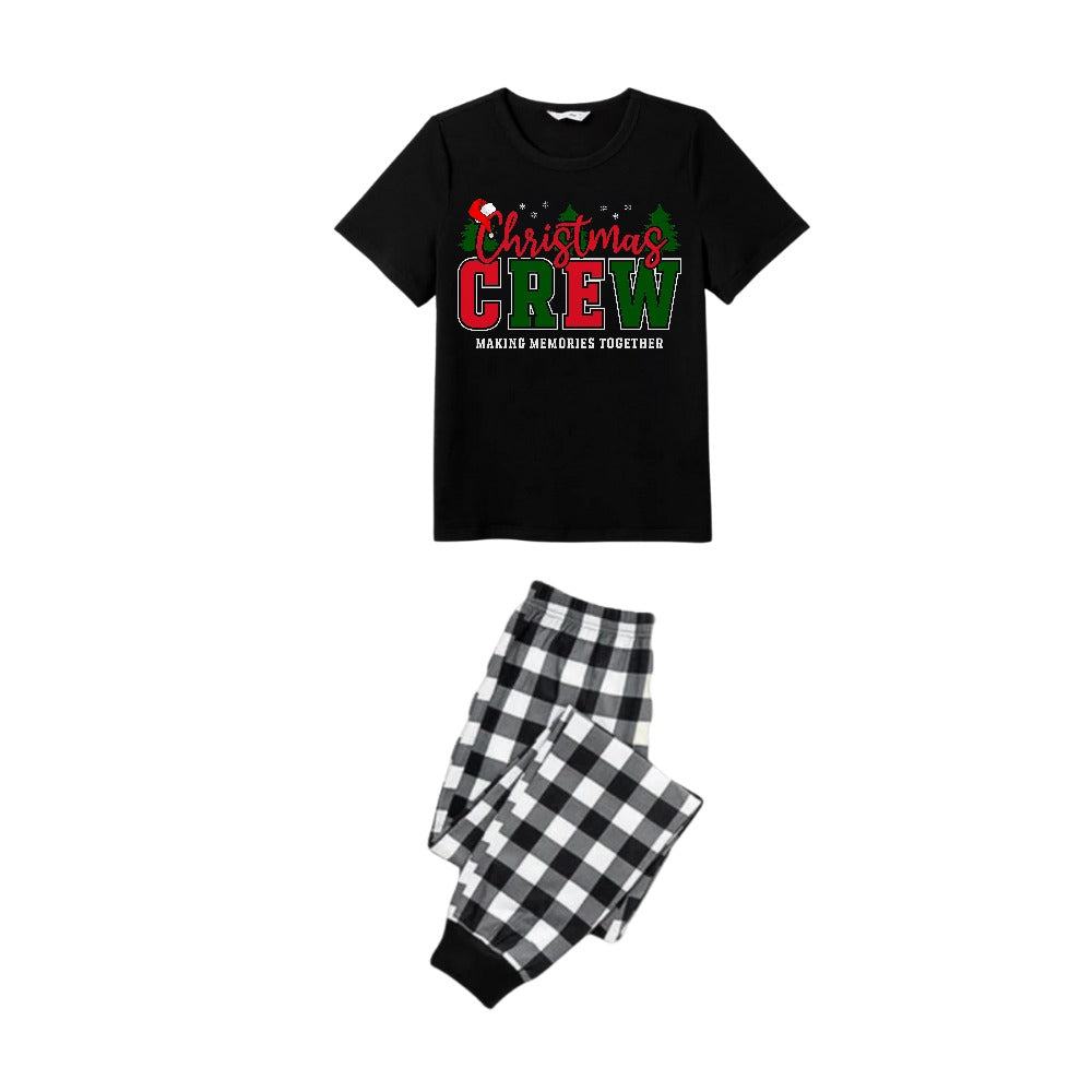 Black and White Plaid Short Sleeve Christmas Family Pajamas Set With Colorful "Christmas Crew Making Memories Together" Print