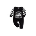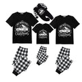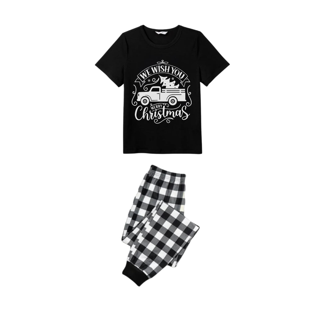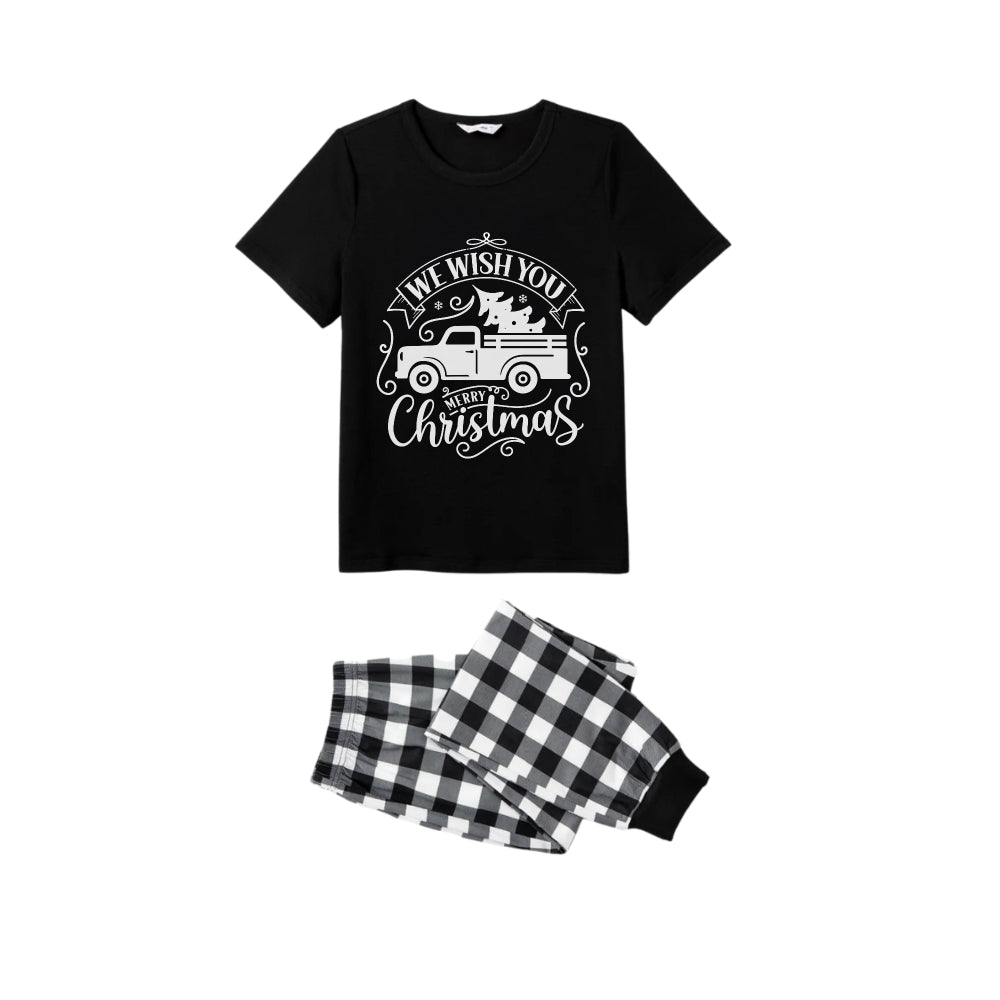 Black and White Plaid Short Sleeve Christmas Pajamas Set With Christmas Tree and Car Print