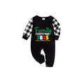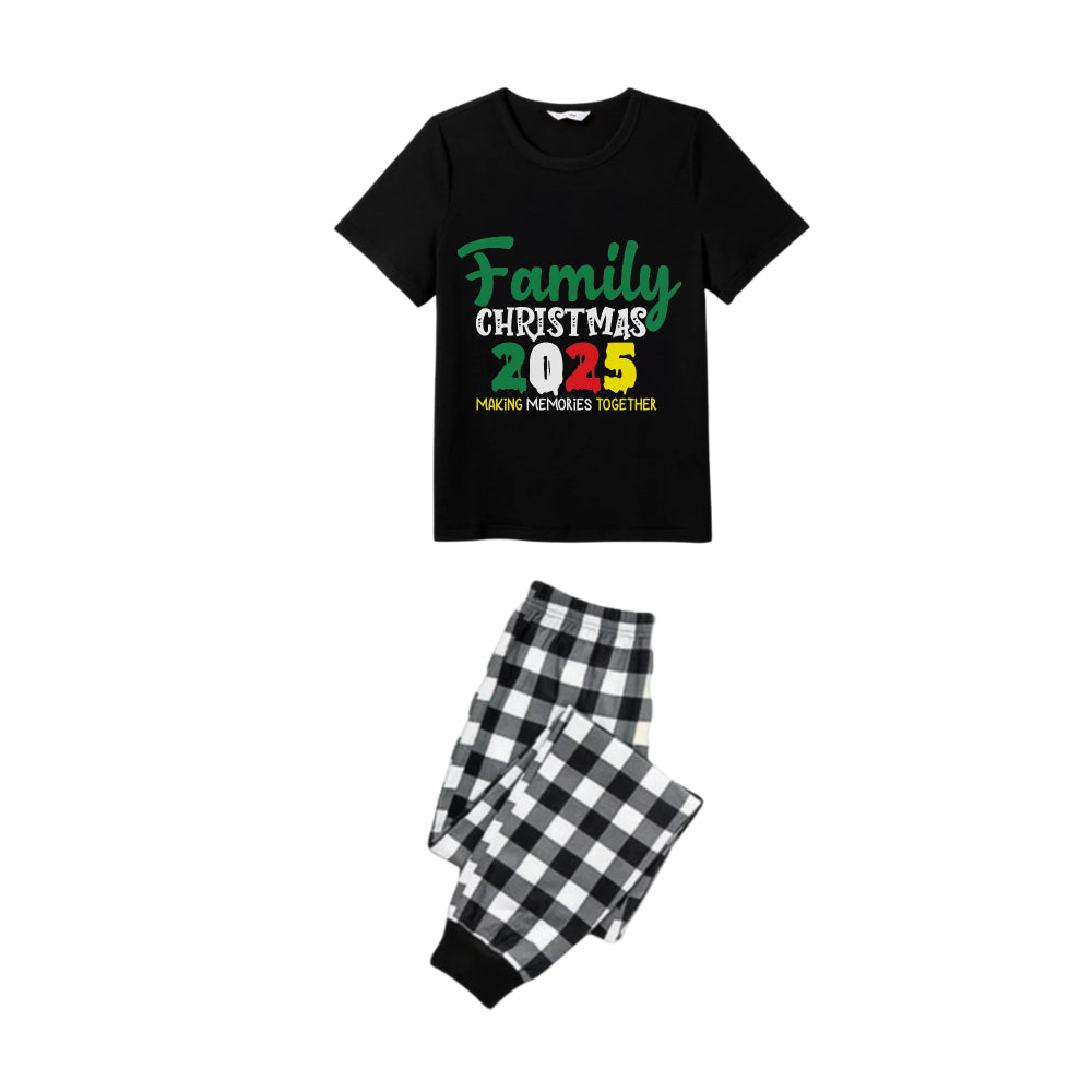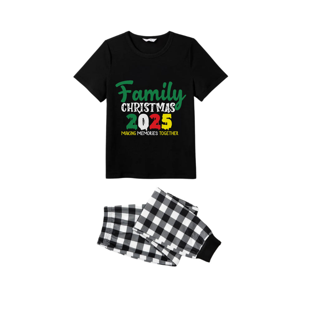 Black and White Plaid Short Sleeve Christmas Pajamas Set With Holiday Slogan Print