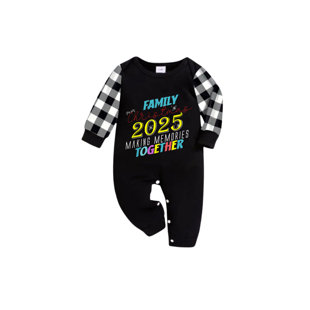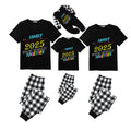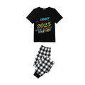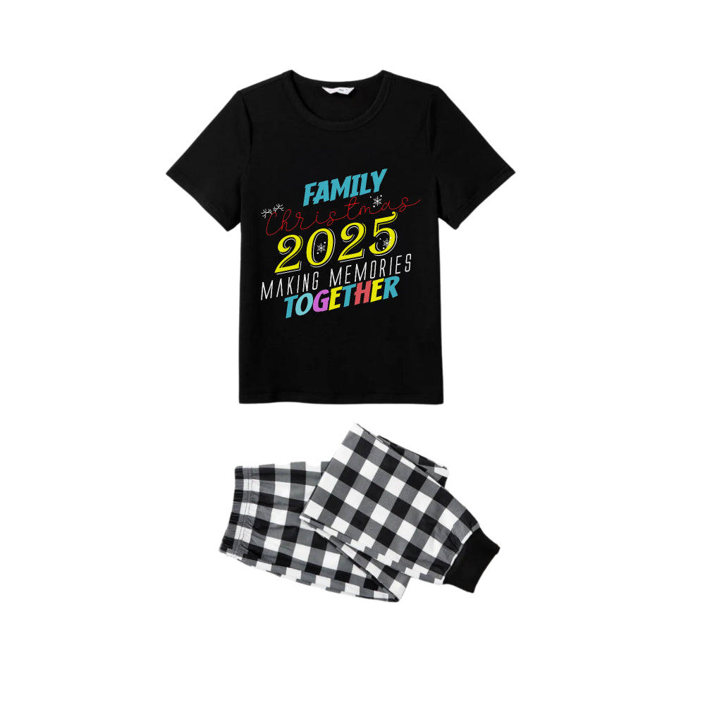 Black and White Plaid Short Sleeve Christmas Pajamas Set With Snowflake & Festive Lettering