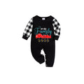 Black and White Plaid Short Sleeve Christmas Pajamas Set With We are Family Festive Lettering Print