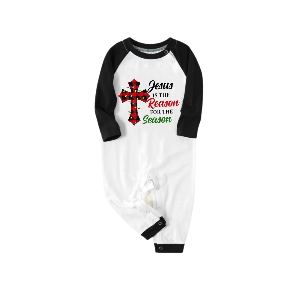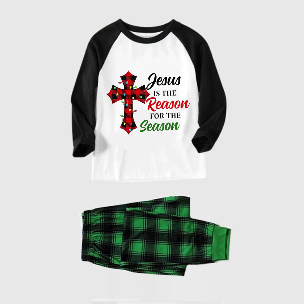 Black Raglan Top Green Plaid Christmas Pajamas Set With "Jesus Is The Reason For The Season" Slogan Print