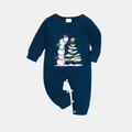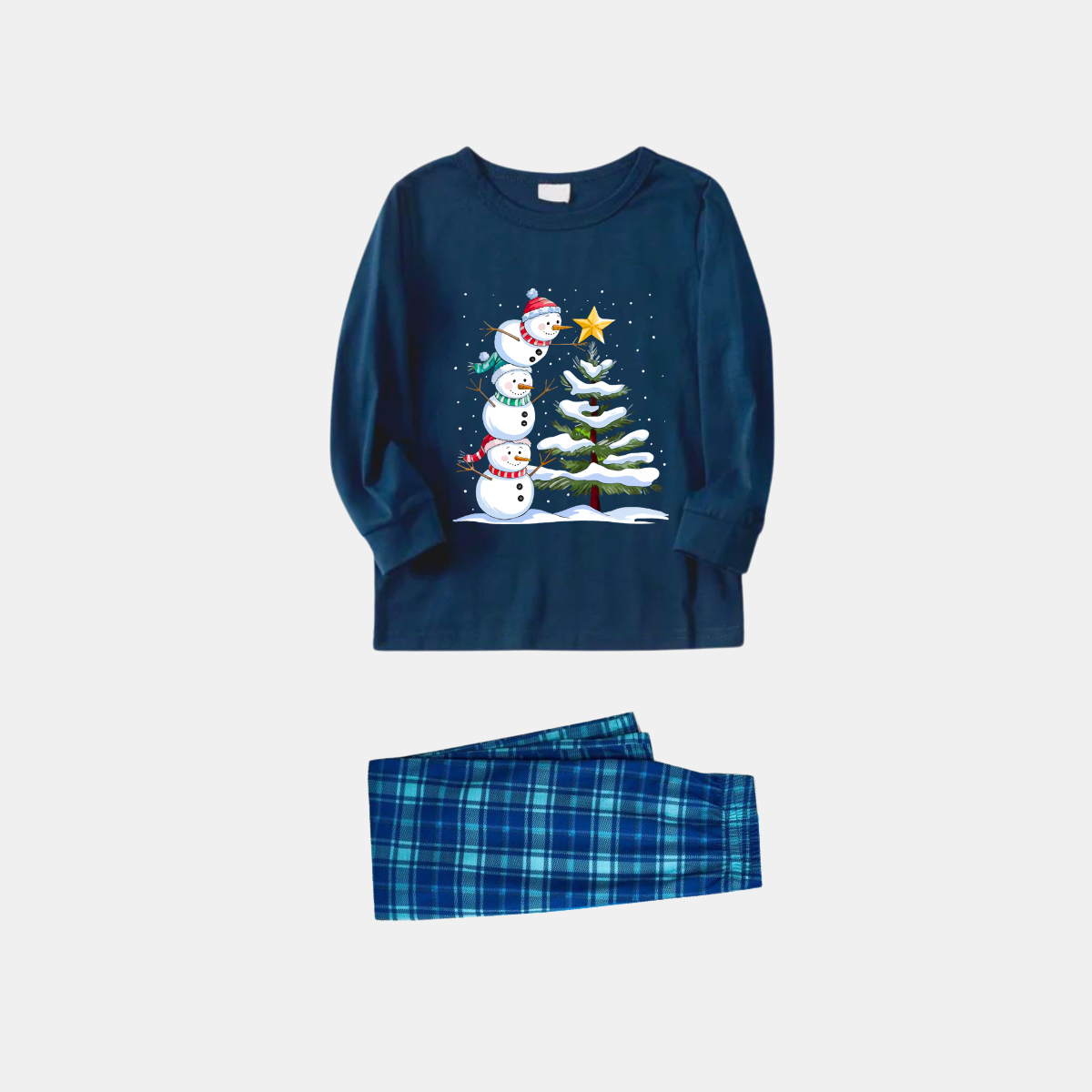 Navy & Sky Blue Plaid Christmas Pajamas Set with Snowman & Christmas Tree Print