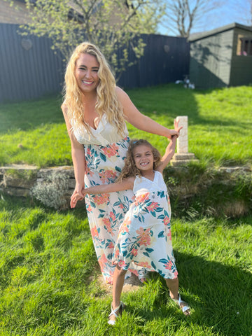 Ruffle Floral Sleeveless Matching Midi Sling Chiffon Dresses