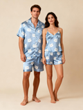 Elevate your sleepwear with our Couple Classic Satin Pajamas Short Set. Designed for comfort and style, this matching set includes: