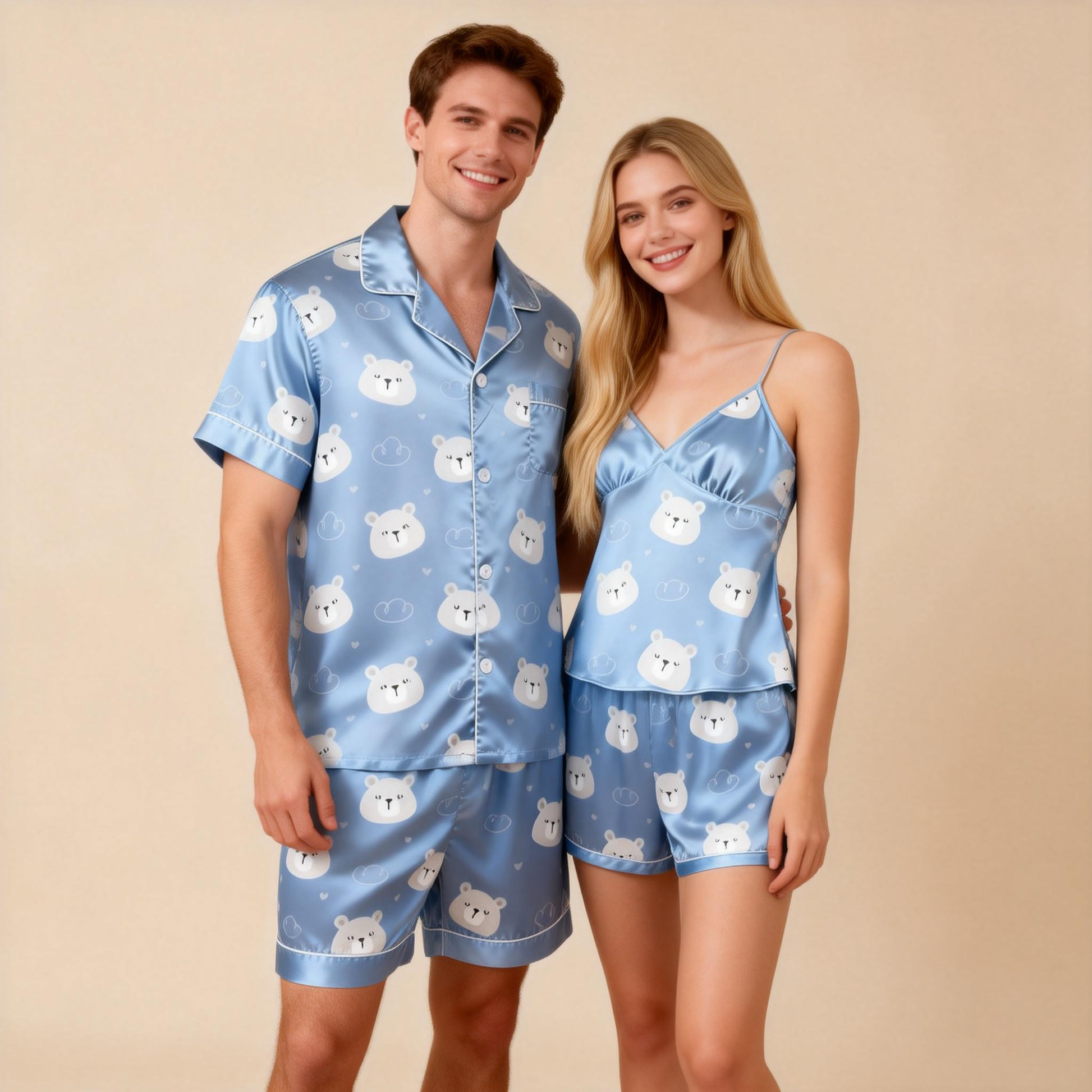 Made from smooth, breathable satin, it’s perfect for warm nights or relaxed lounging. A chic and cozy choice for couples.