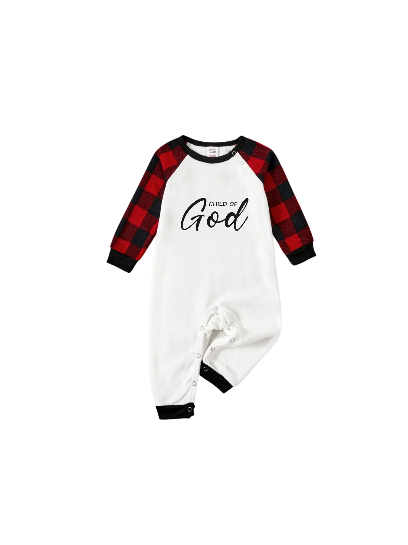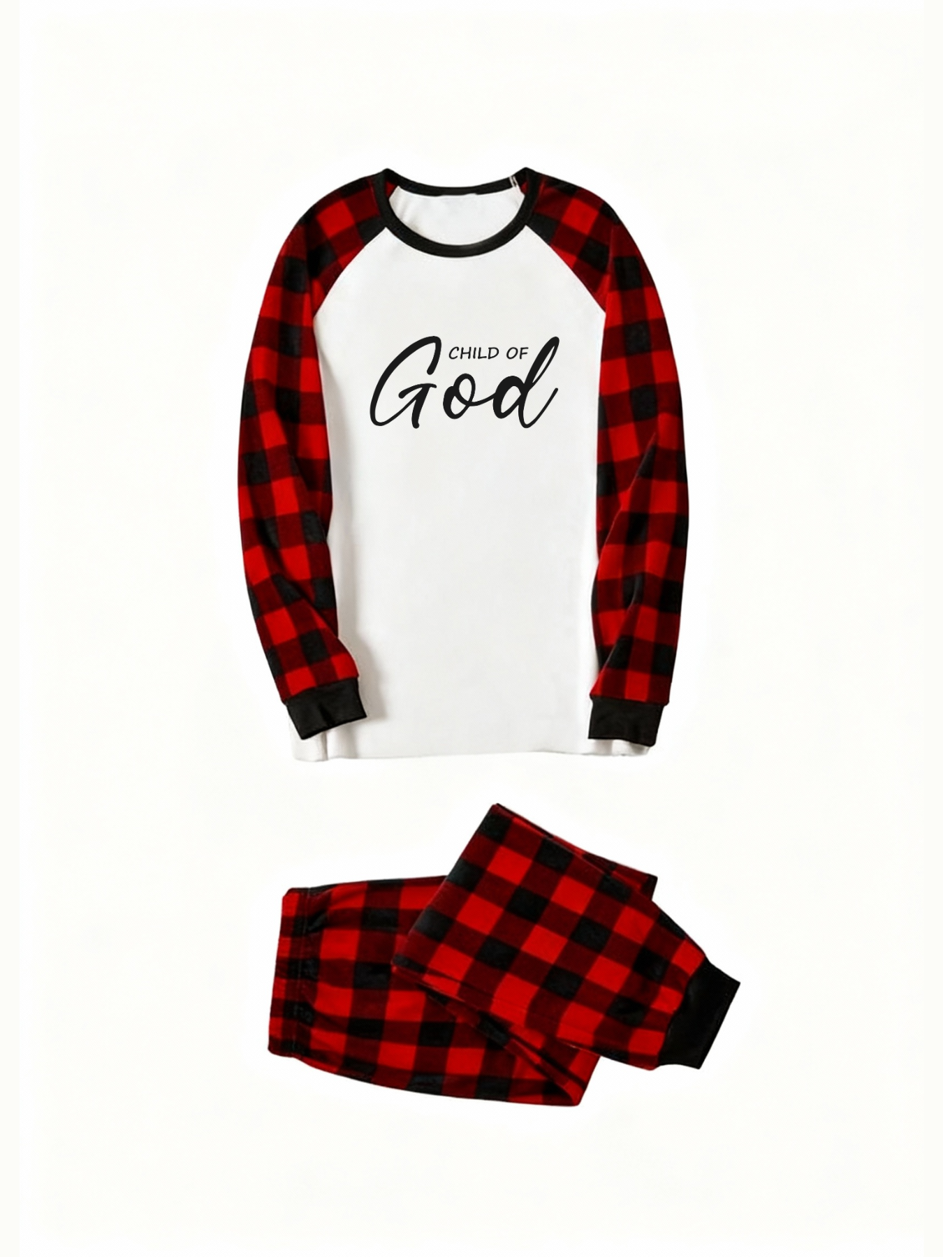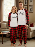 Child Of God Letter Print White Long Sleeve with Black&Red Plaid Pants Family Matching Pajamas