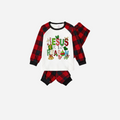 Christmas Cartoon Family Christmas Pajamas Set - White Top with Red Plaid Sleeves and Red Plaid Pants and “Jesus is the Reason” Design