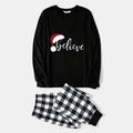 Christmas Hat and ‘Believe“ Letter Print Patterned Couple Black & White Plaid Pajamas Set