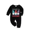 Christmas Family Matching Pajamas-Black Top and Green Plaid Pants Pjs Set with Gnome Family and Christmas Slogan Print
