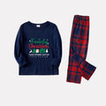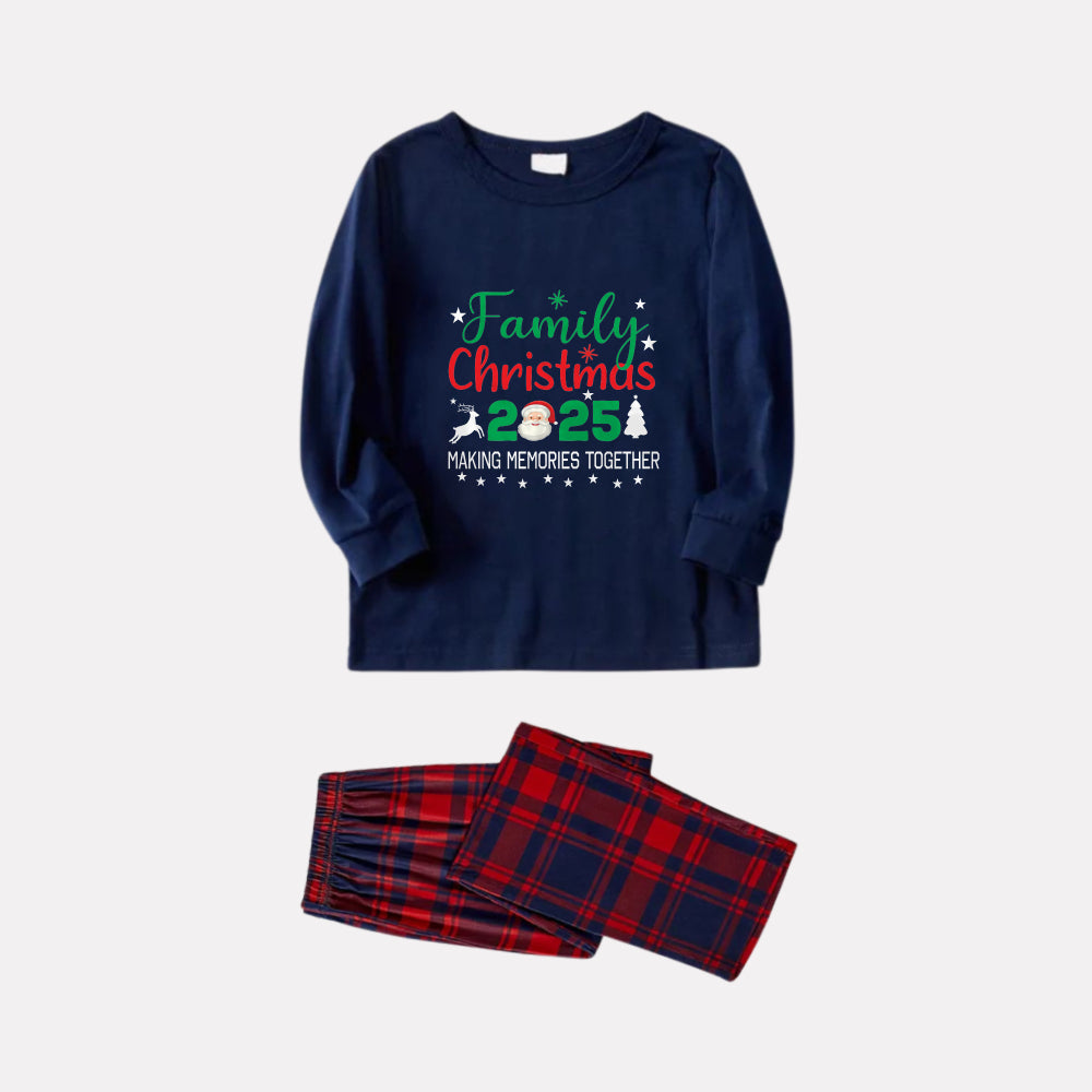 Christmas Family Matching Pajamas-Navy & Red Plaid Pjs Set with "Family Christmas 2025" and Santa Pattern Print