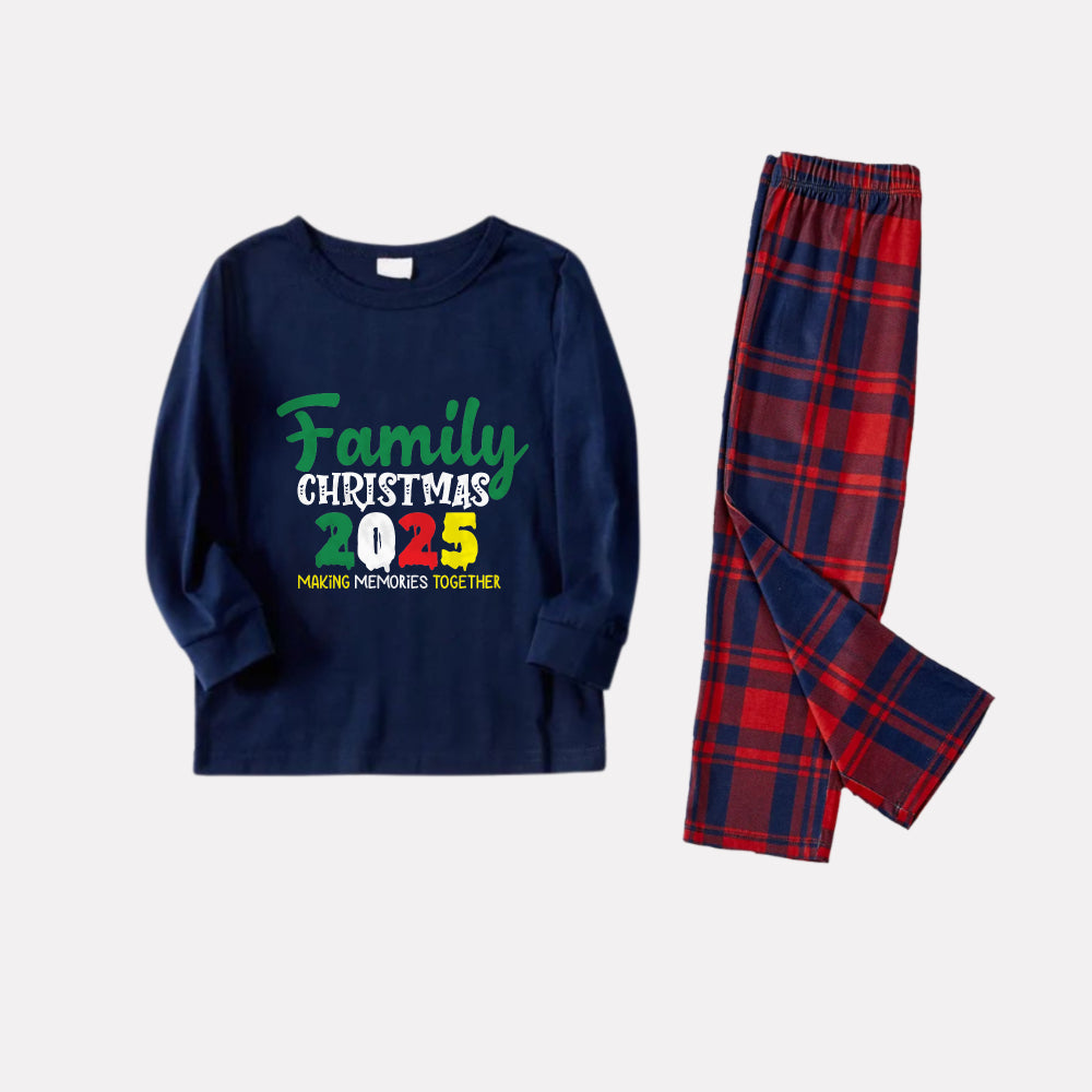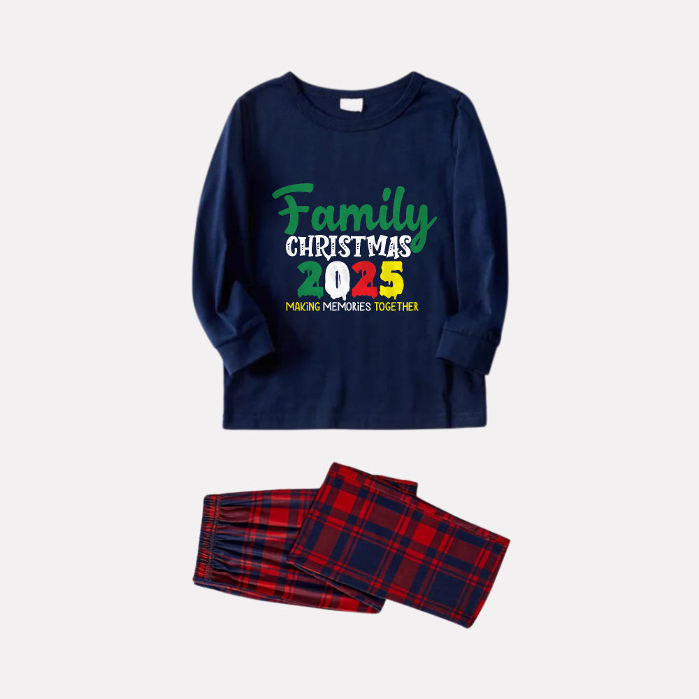 Christmas Family Matching Pajamas-Navy & Red Plaid Pjs Set with "Family Christmas 2025" Text Print