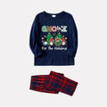 Christmas Family Matching Pajamas-Navy & Red Plaid Pjs Set with "Gnome For The Holidays" Slogan Print