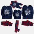 Christmas Family Matching Pajamas-Navy & Red Plaid Pjs Set with "We Wish You A Merry Christmas" Slogan Print