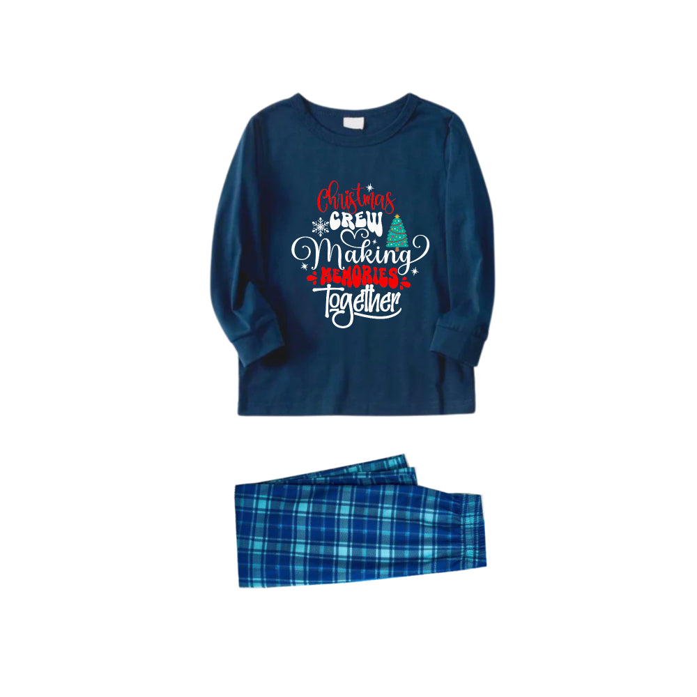 Christmas Family Matching Pajamas-Navy & Sky Blue Plaid Pjs Set with "Christmas Crew Making Memories Together" Artistic Font Print
