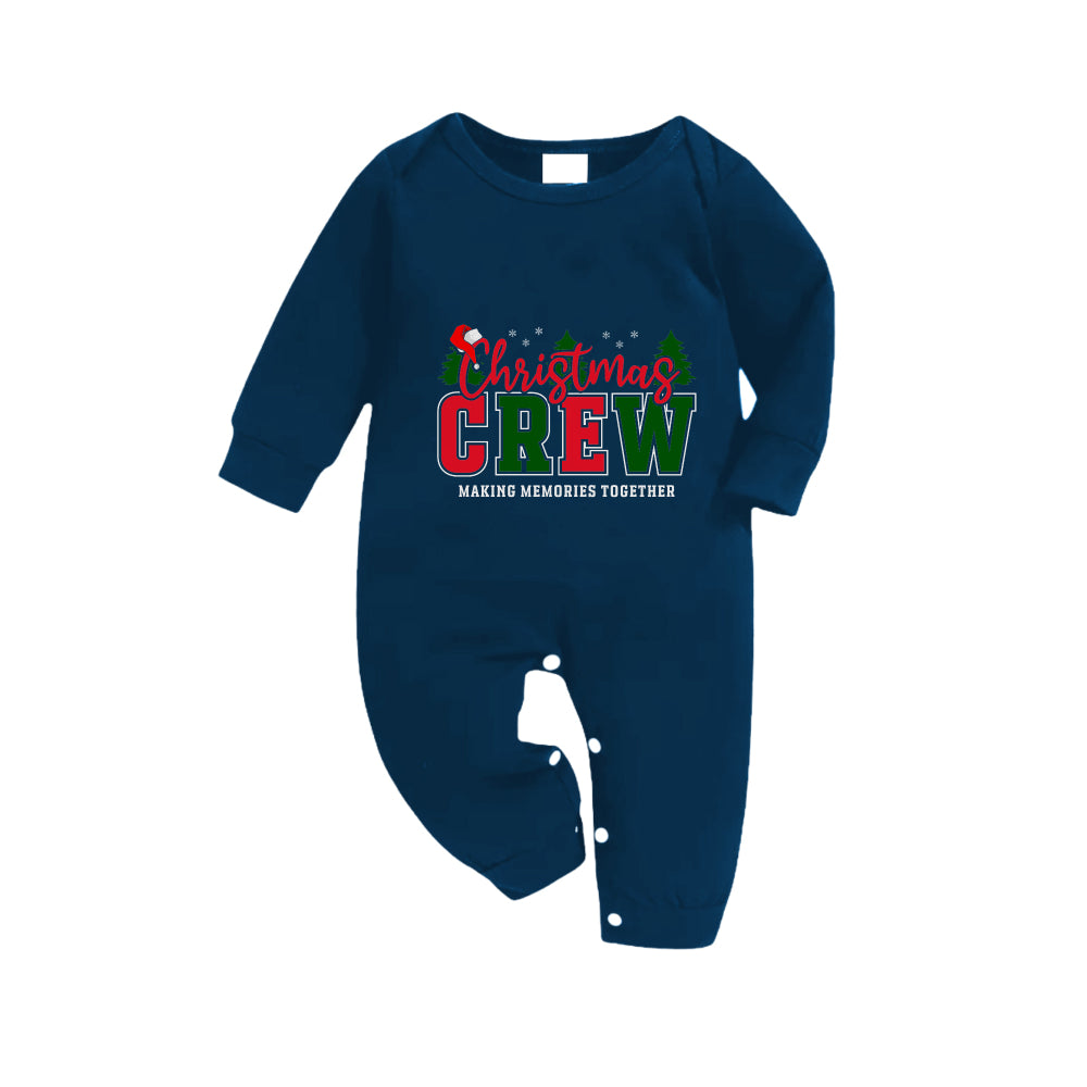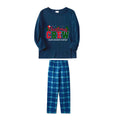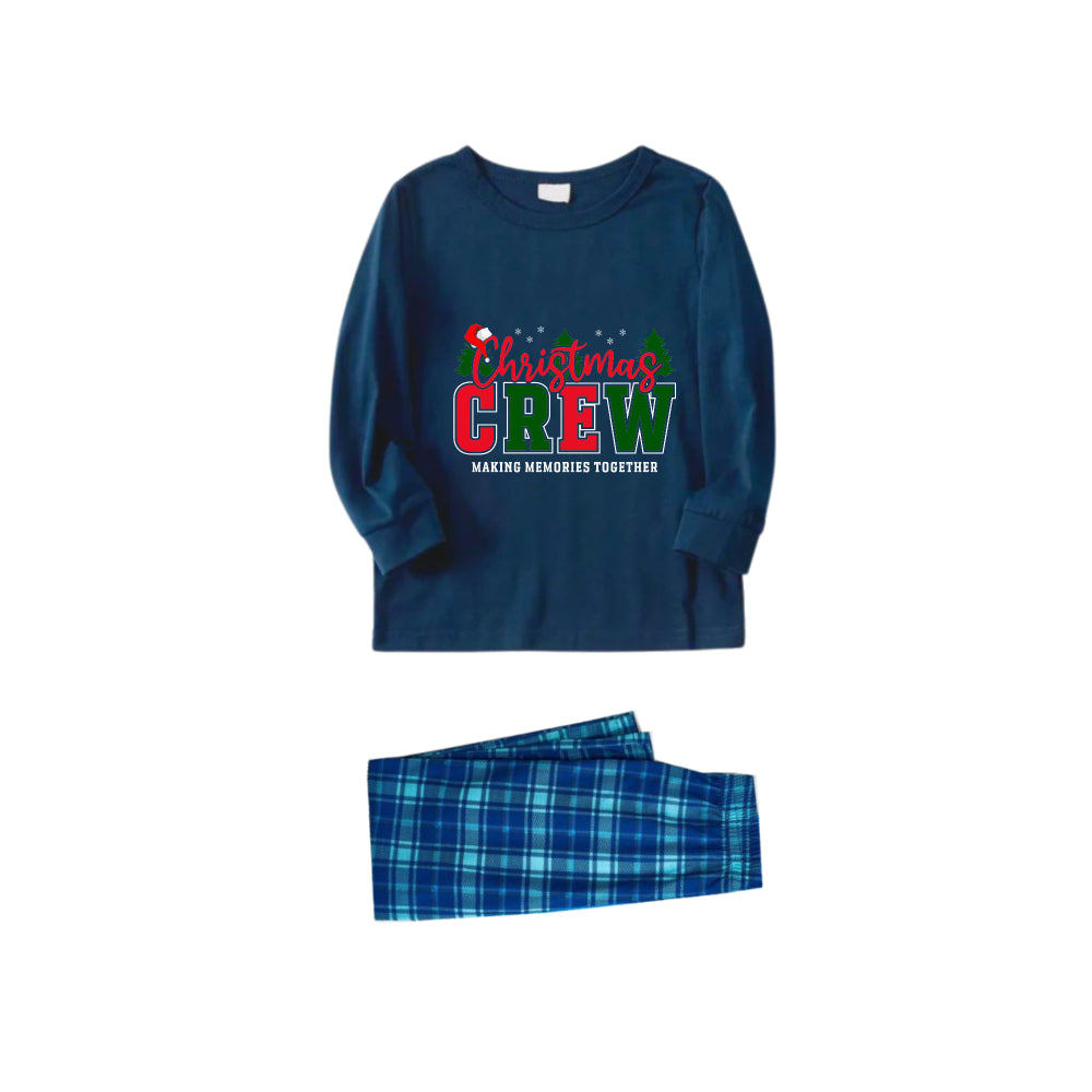 Christmas Family Matching Pajamas-Navy & Sky Blue Plaid Pjs Set with "Christmas Crew Making Memories Together" Slogan Print