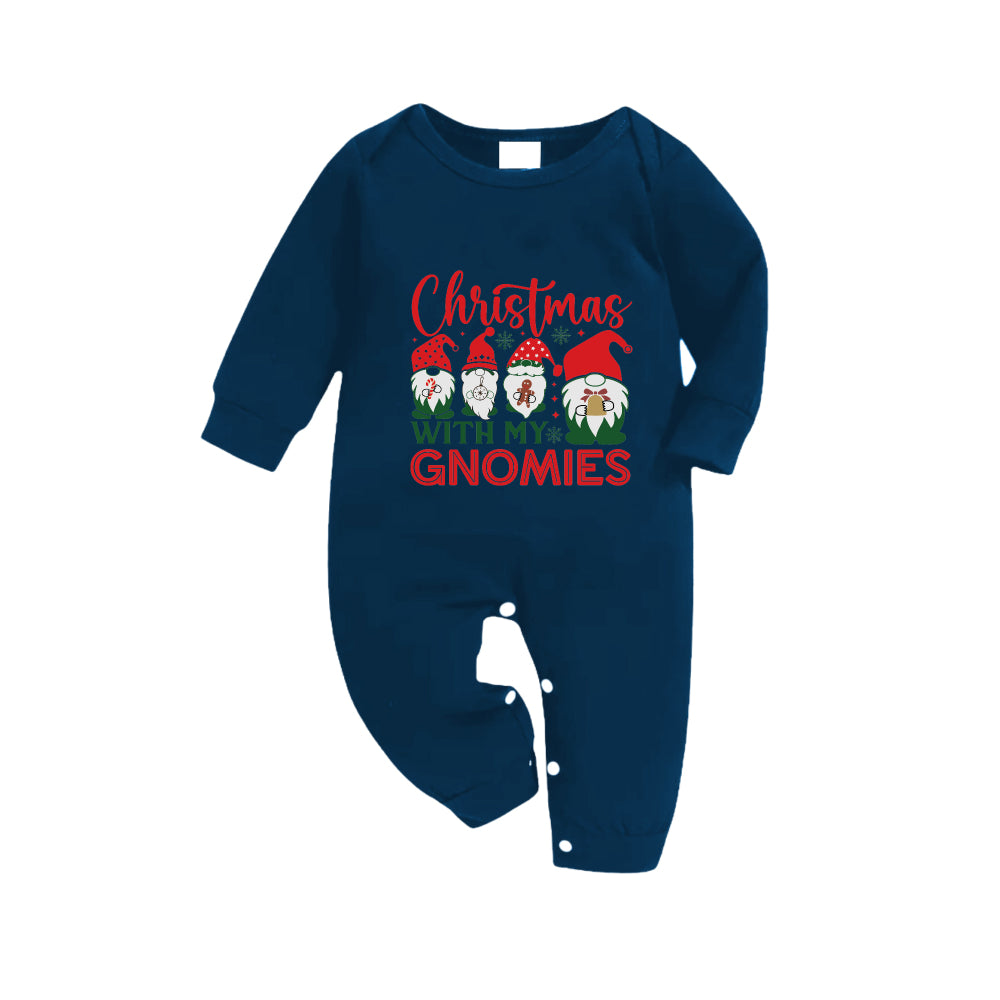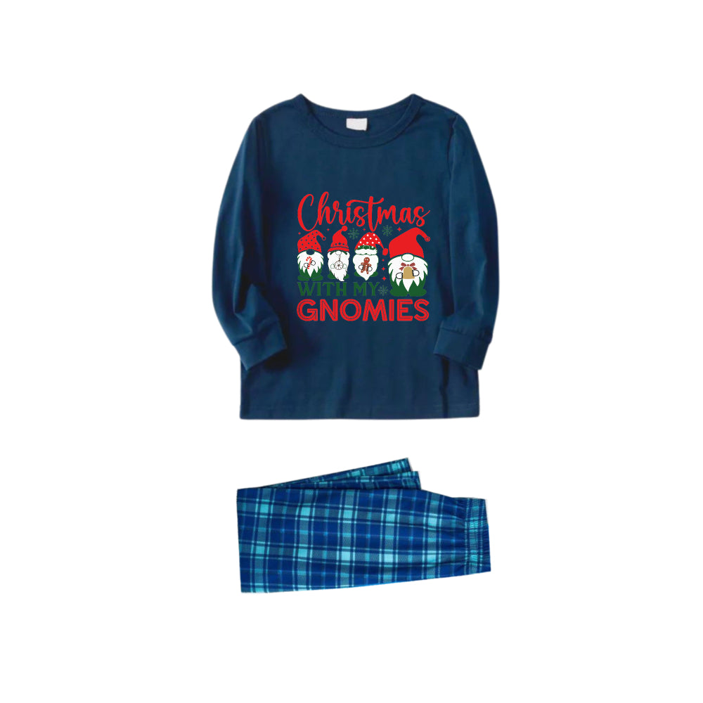 Christmas Family Matching Pajamas-Navy & Sky Blue Plaid Pjs Set with "Christmas With My Gnomies" Slogan Print