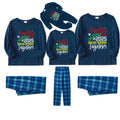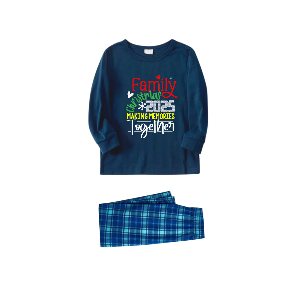 Christmas Family Matching Pajamas-Navy & Sky Blue Plaid Pjs Set with "Family Christmas 2025 Making Memories Together" Artistic Font Print