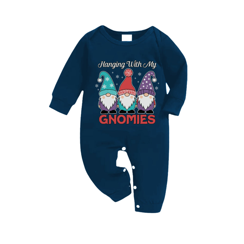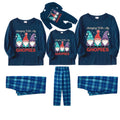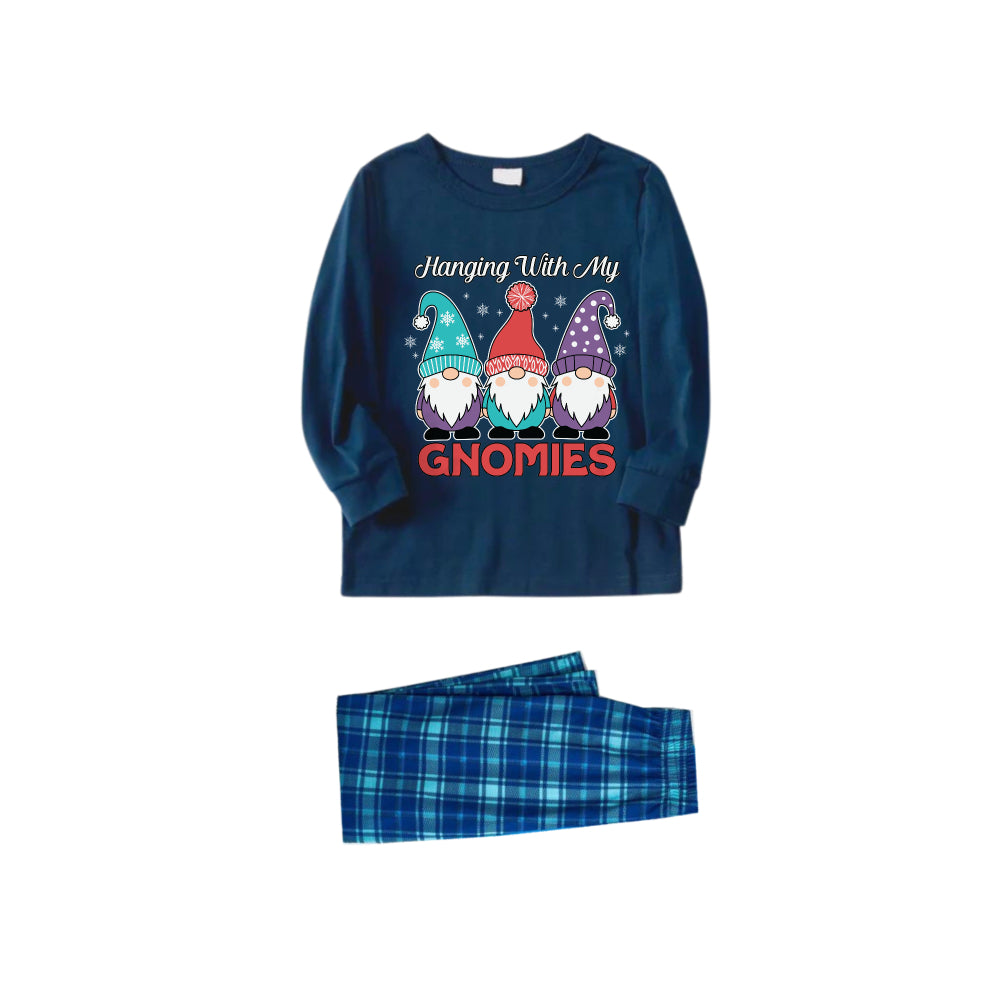Christmas Family Matching Pajamas-Navy & Sky Blue Plaid Pjs Set with "Hanging With My Gnomies" and Gnome Cartoon Print