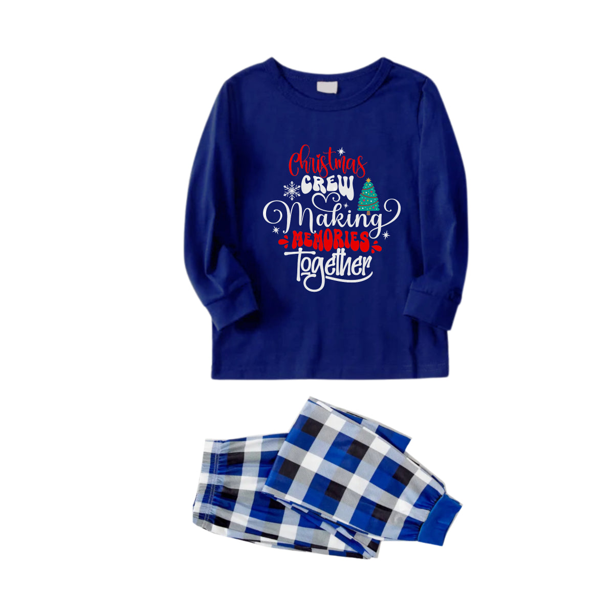 Christmas Family Matching Pajamas-Navy & White Plaid Pjs Set with "Christmas Crew Making Memories Together" Artistic Font Print