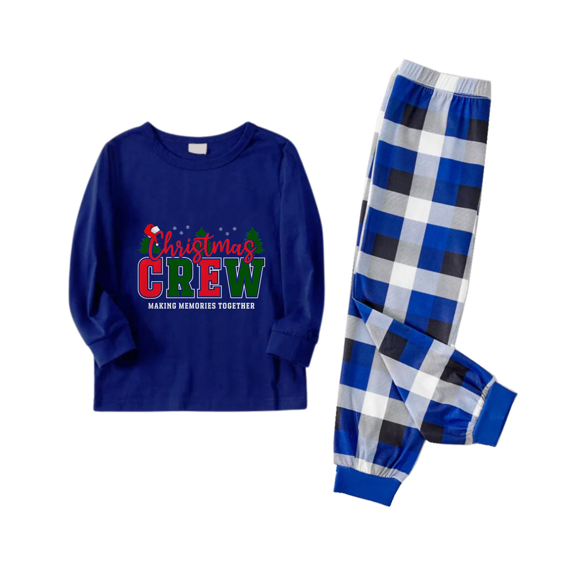 Christmas Family Matching Pajamas-Navy & White Plaid Pjs Set with "Christmas Crew Making Memories Together" Slogan Print