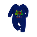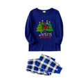 Christmas Family Matching Pajamas-Navy & White Plaid Pjs Set with Christmas Tree and "Jesus Christmas" Print