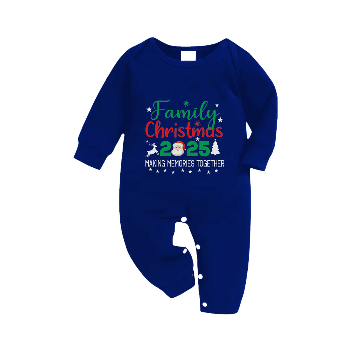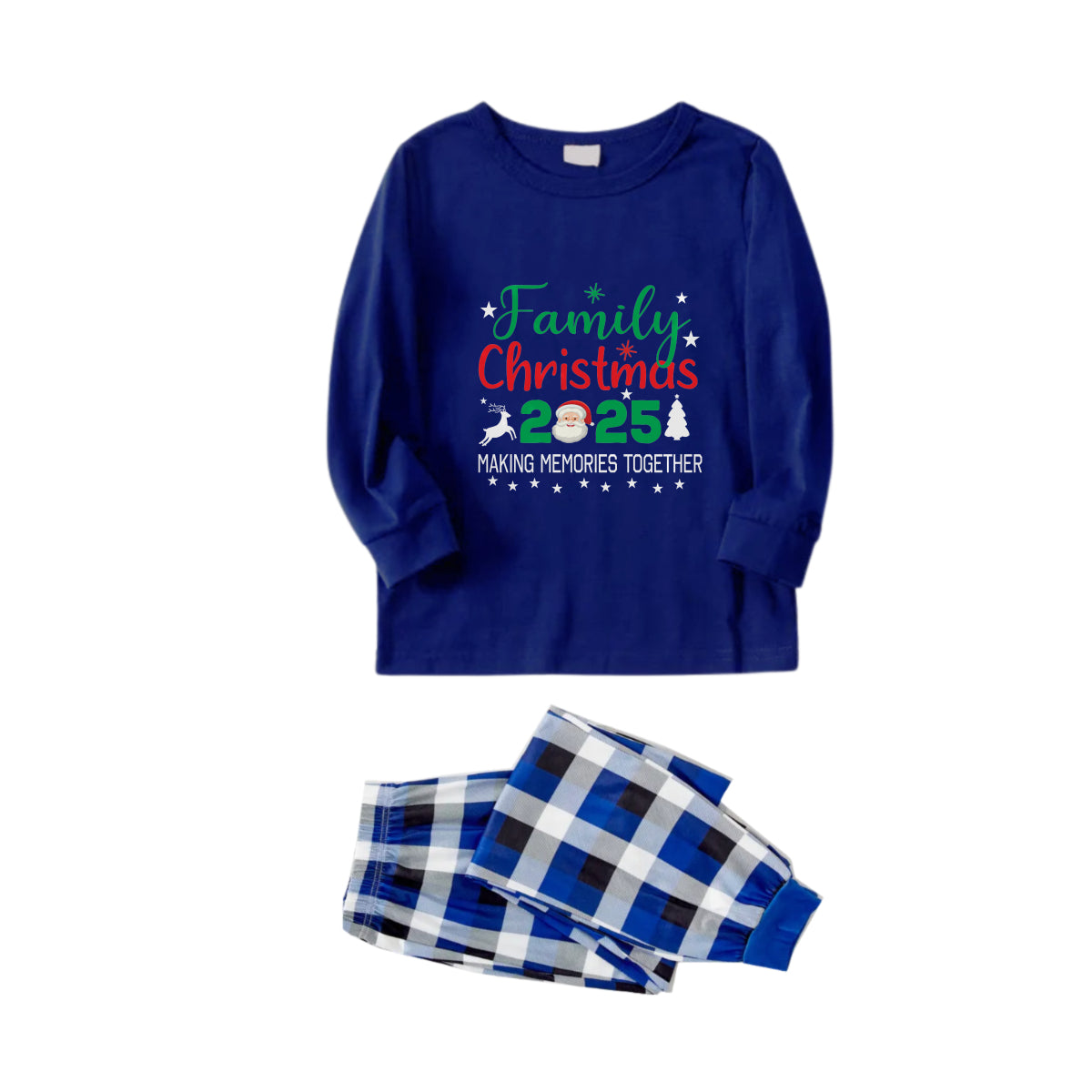Christmas Family Matching Pajamas-Navy & White Plaid Pjs Set with "Family Christmas 2025" and Santa Pattern Print