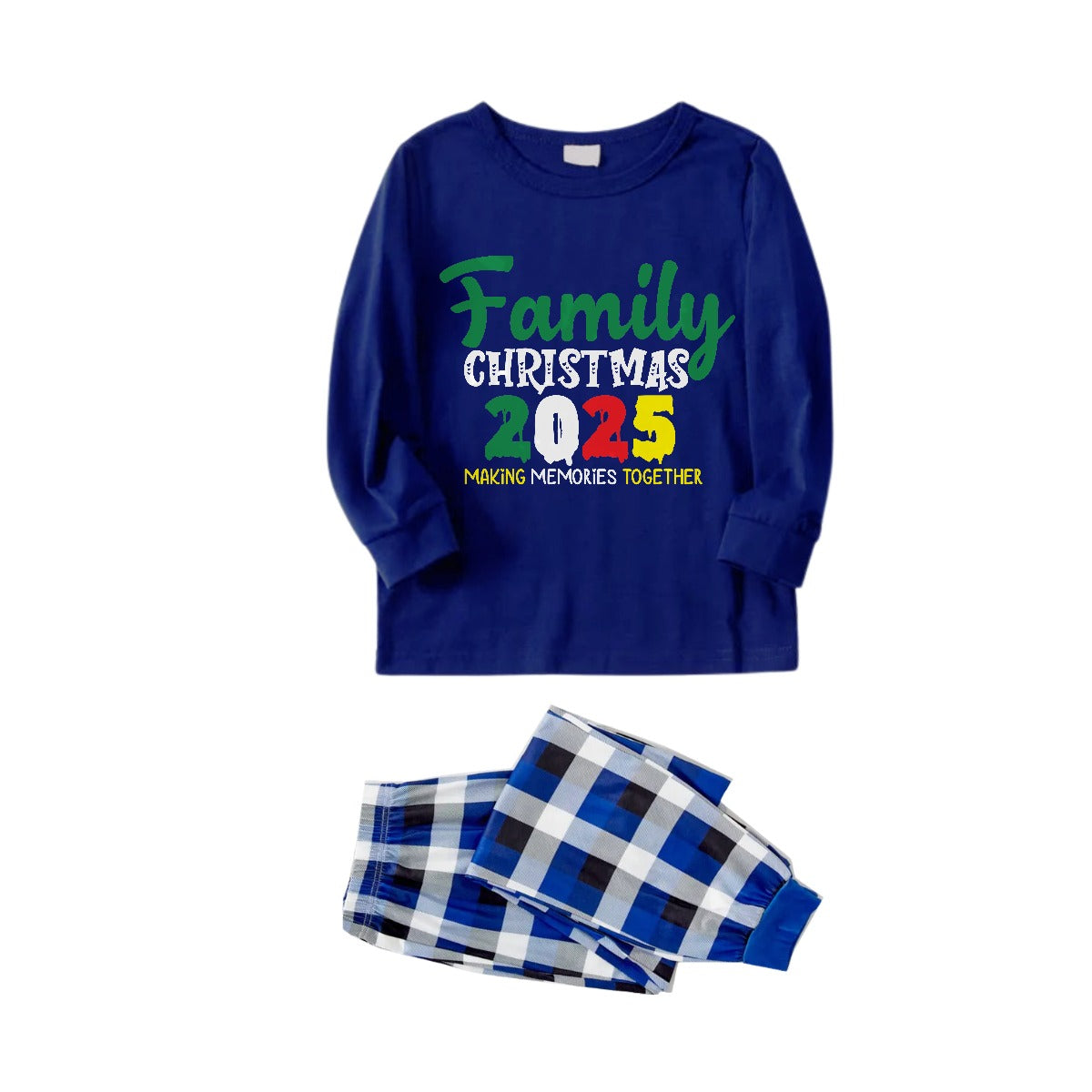 Christmas Family Matching Pajamas-Navy & White Plaid Pjs Set with "Family Christmas 2025" Slogan Print