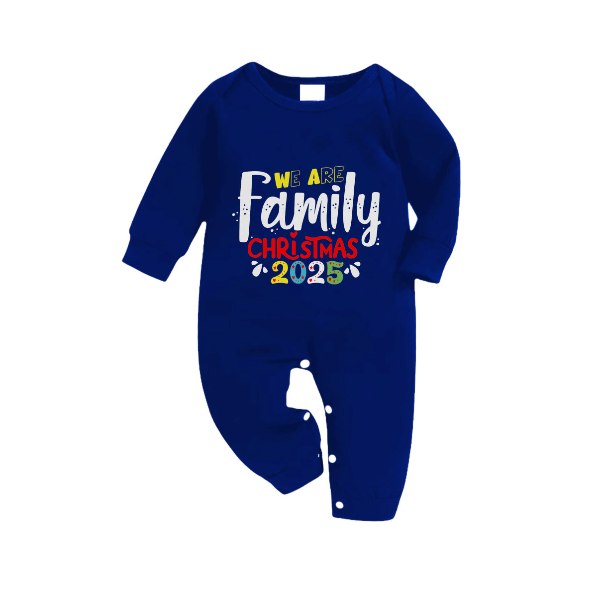 Christmas Family Matching Pajamas-Navy & White Plaid Pjs Set with "We Are Family Christmas 2025" Colorful Text Print