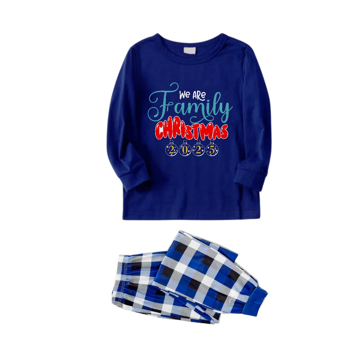 Christmas Family Matching Pajamas-Navy & White Plaid Pjs Set with "We Are Family Christmas 2025" Print
