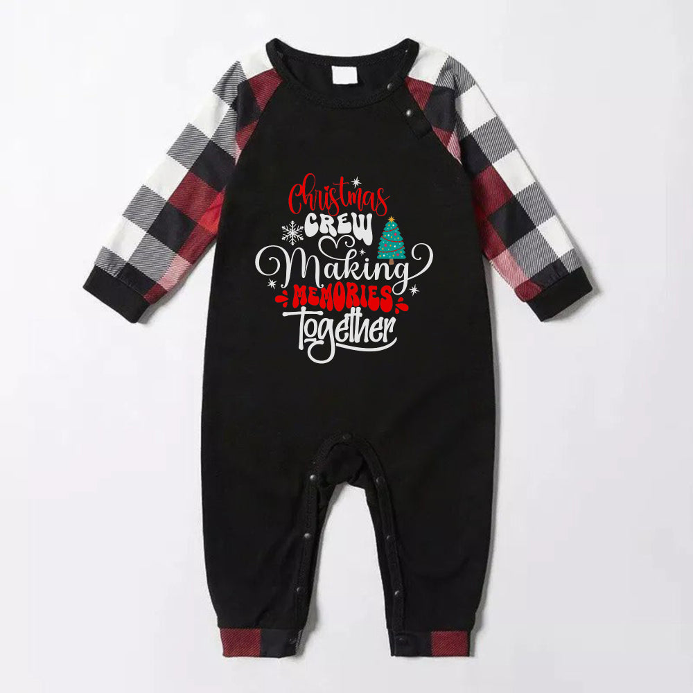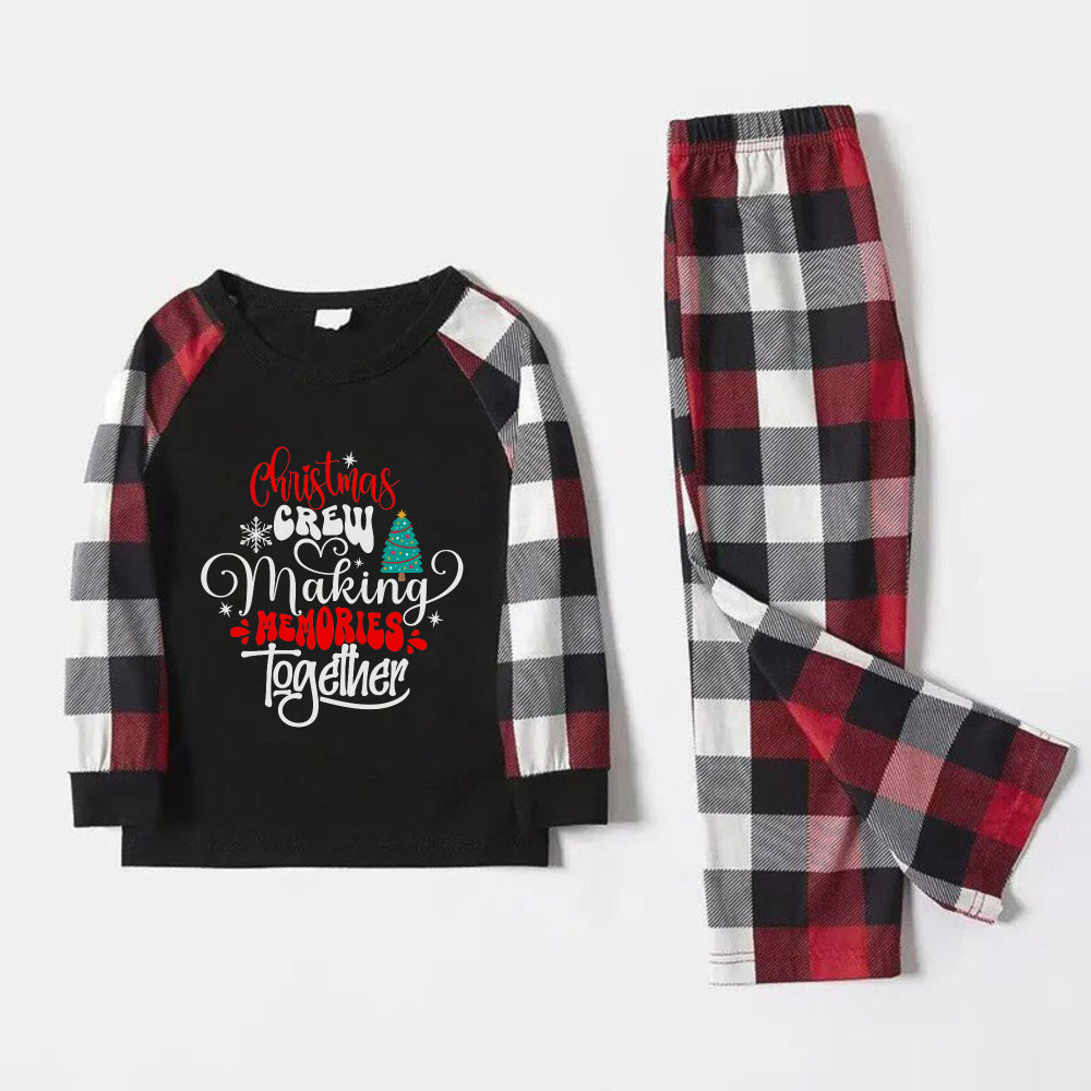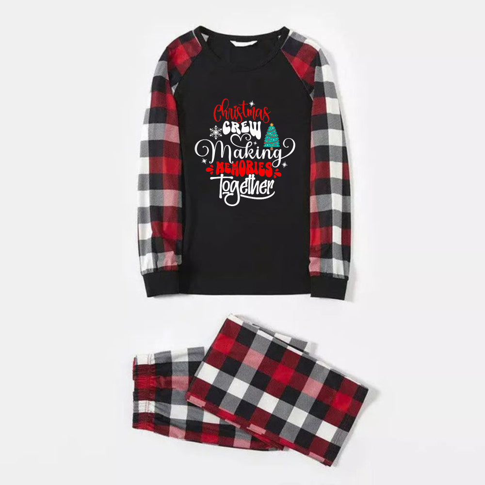 Christmas Family Matching Pajamas-Red and Gray Plaid Pjs set with "Christmas Crew Making Memories Together" Artistic Font Slogan Print
