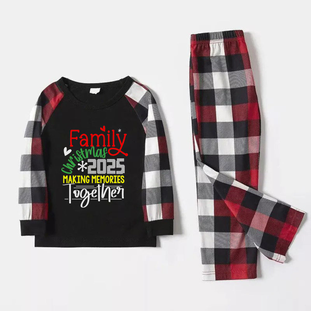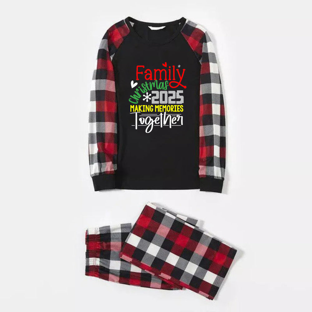 Christmas Family Matching Pajamas-Red and Gray Plaid Pjs set with "Family Christmas 2025 Making Memories Together" Colorful Slogan Print