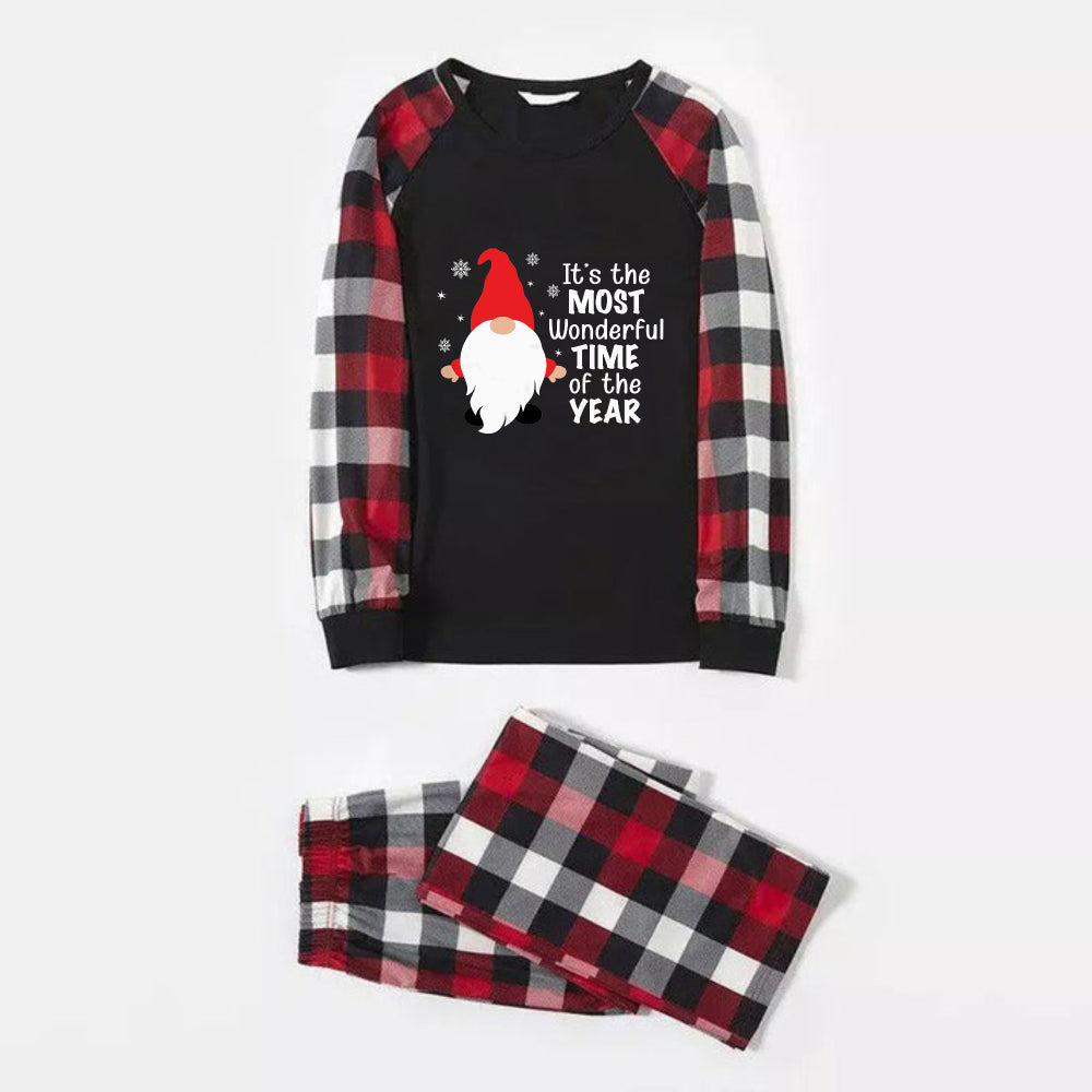Christmas Family Matching Pajamas-Red and Gray Plaid Pjs set with "It is the most wonderful time of the year" and Gnome Print